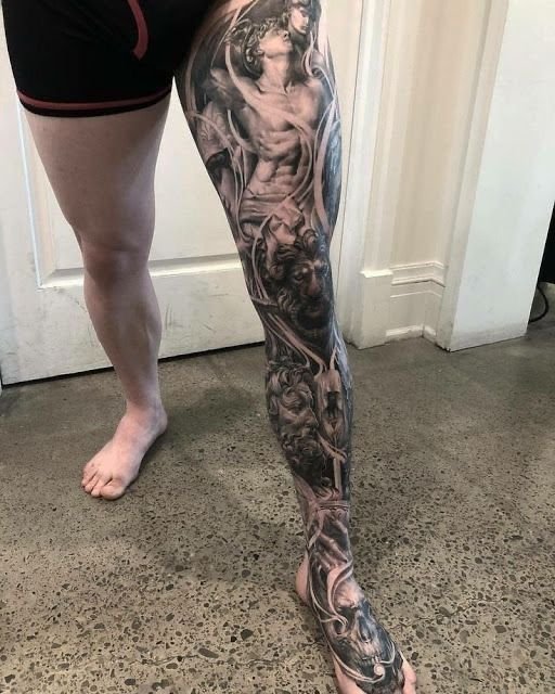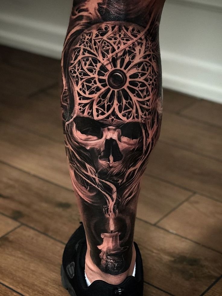 Bein-Tattoos für Männer sind eine gute Möglichkeit, nicht nur die Muskulatur der Beine, sondern auch den Charakter des Trägers zu betonen. Schließlich ist das Bein eine große Leinwand für ein Tattoo-Projekt.