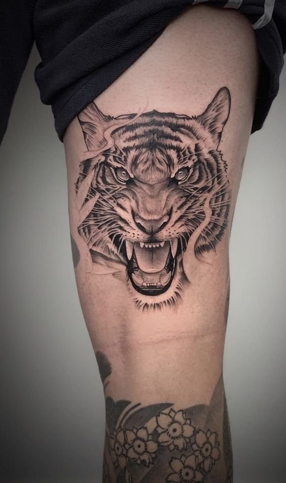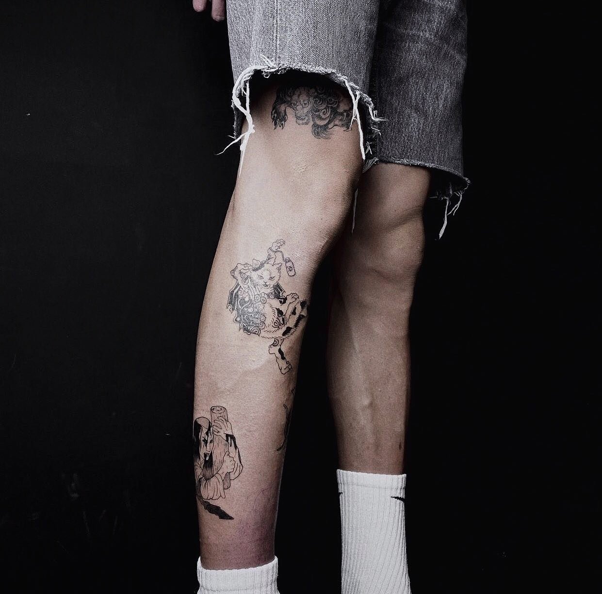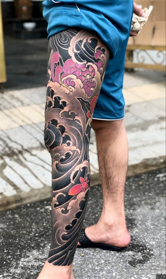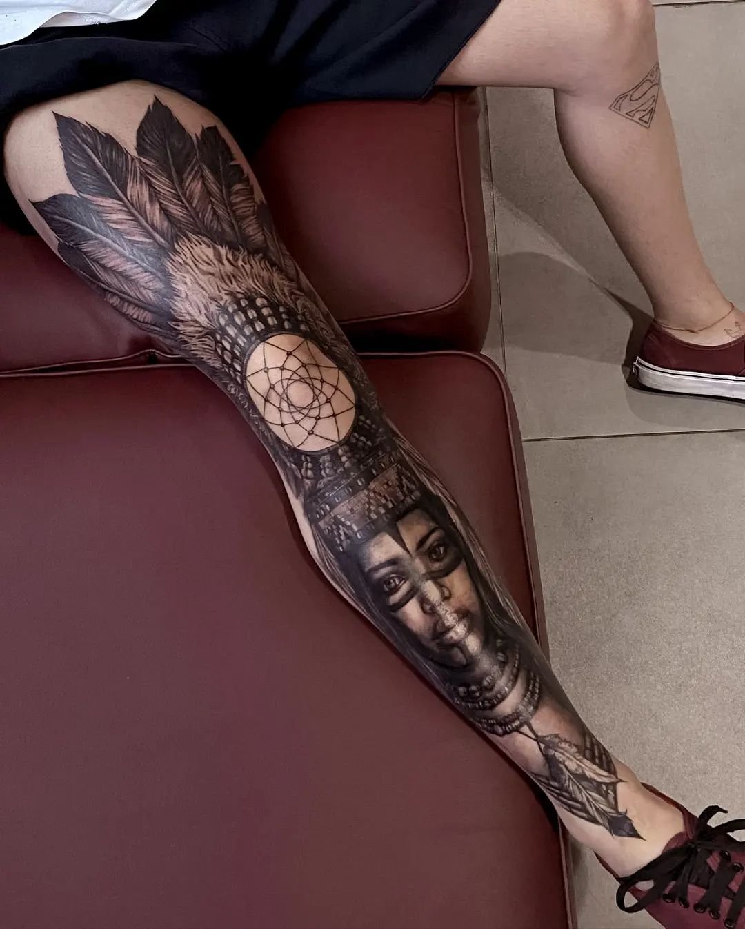 Es gibt nur wenige Stellen am Bein, an denen das Tätowieren sehr schmerzhaft ist. Ansonsten ist es dank der Muskel- und Fettschicht leicht, Sitzung für Sitzung zu ertragen.