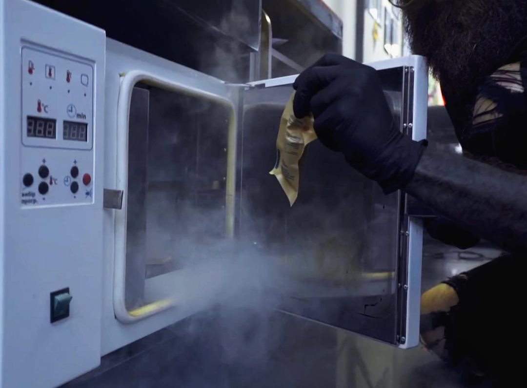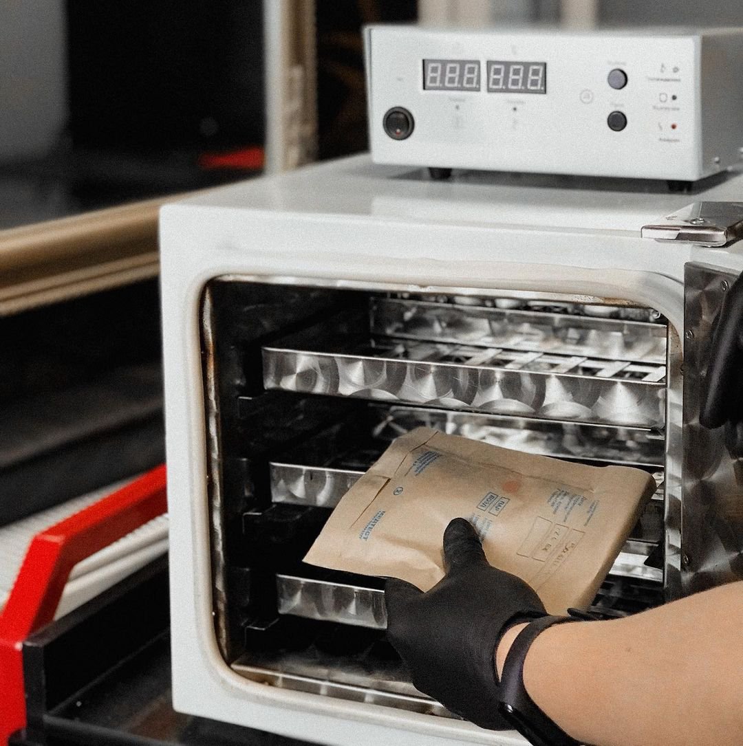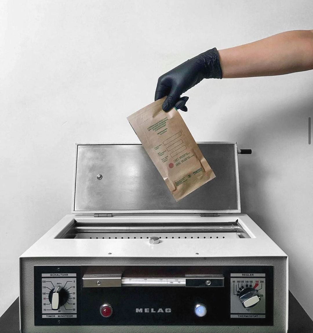 Als nächstes werden die Werkzeuge in einen Hitzeschrank oder Dampfdrucksterilisator gelegt. Sie befinden sich mindestens eine Stunde dort und werden bei hohen Temperaturen verarbeitet, in der Regel mindestens 175 Grad.