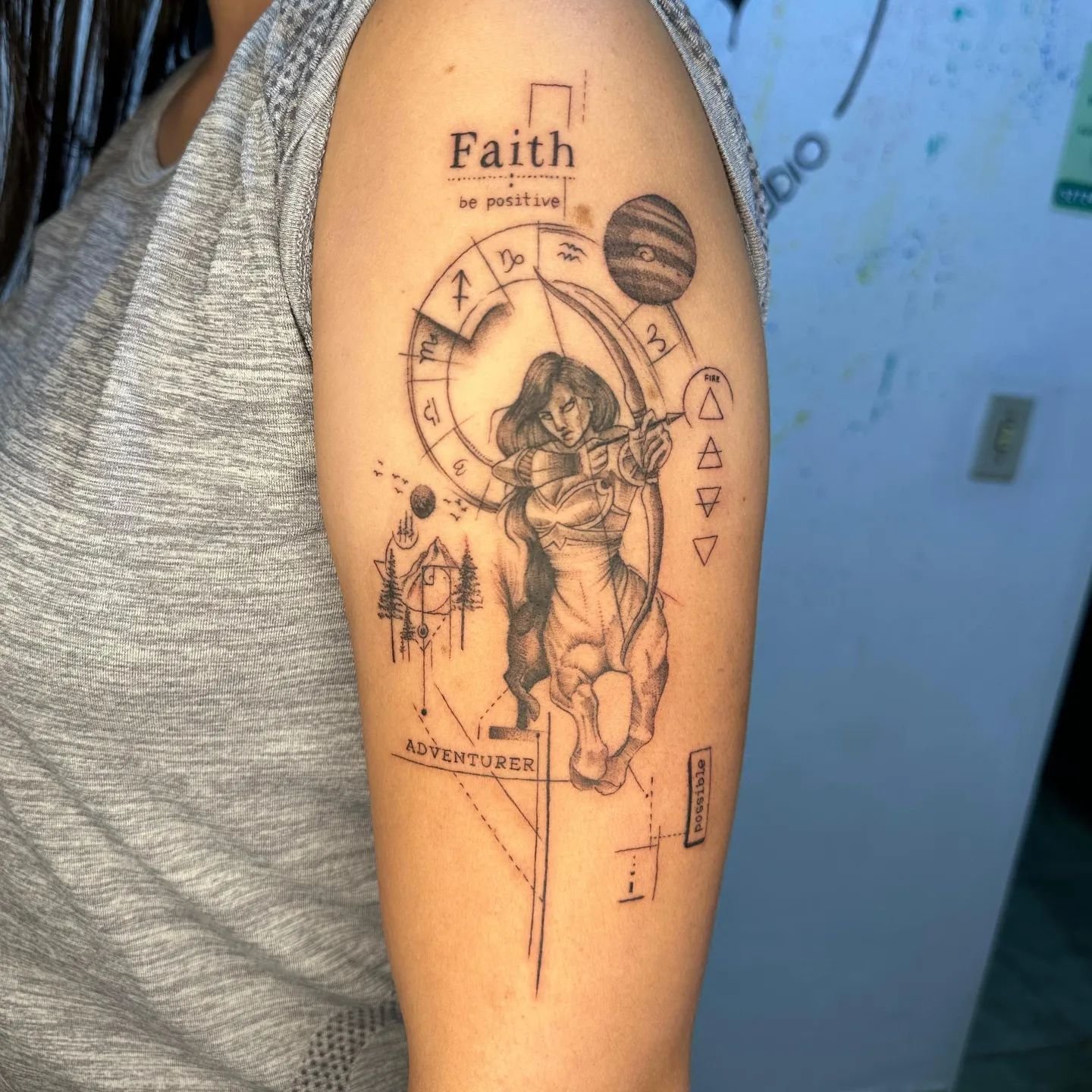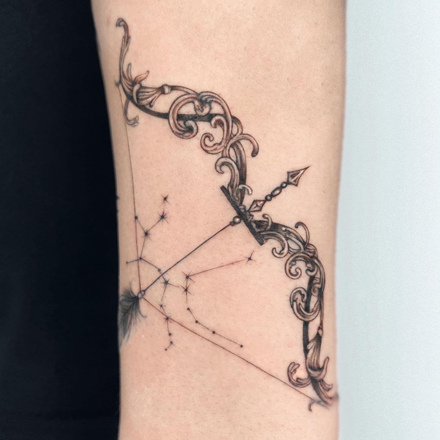Sein Bogen symbolisiert Zielstrebigkeit, Geschick und Scharfsinnigkeit. Auch die Darstellung nur eines Bogens oder eines Pfeils ist für ein astrologisches Tattoo möglich. Ohne den Zentauren tragen sie eine etwas andere Bedeutung und dienen hauptsächlich als Schutzsymbol für die Person. Sie symbolisieren beispielsweise Arbeitswerkzeuge und ihre Rolle in unserem Leben.