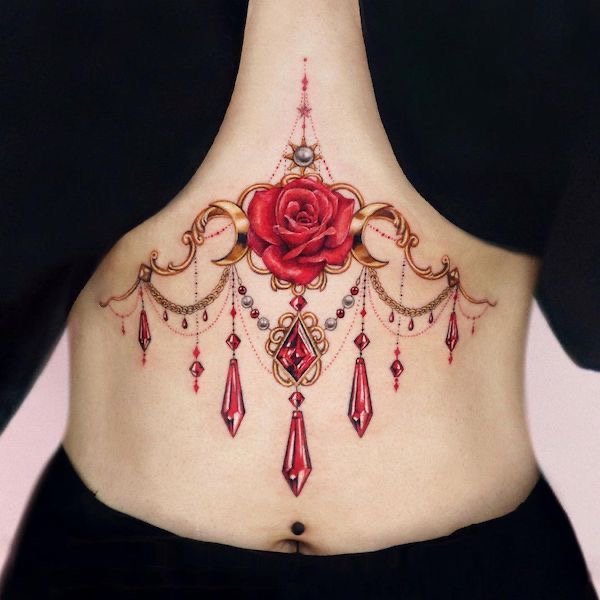 Diese Art von Tätowierung betont die natürlichen Körperlinien, wirkt elegant und ermöglicht es Frauen, sich auf künstlerische Weise auszudrücken. Immer mehr Frauen entscheiden sich für diesen Bereich, da das Motiv je nach Situation entweder dezent verborgen oder selbstbewusst gezeigt werden kann.