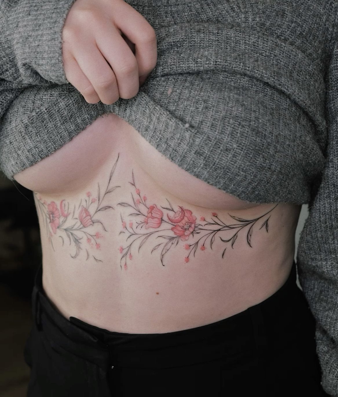 Ein Tattoo unter der Brust trägt eine besondere Symbolik, die eng mit Weiblichkeit, innerer Welt und persönlichem Raum verbunden ist.