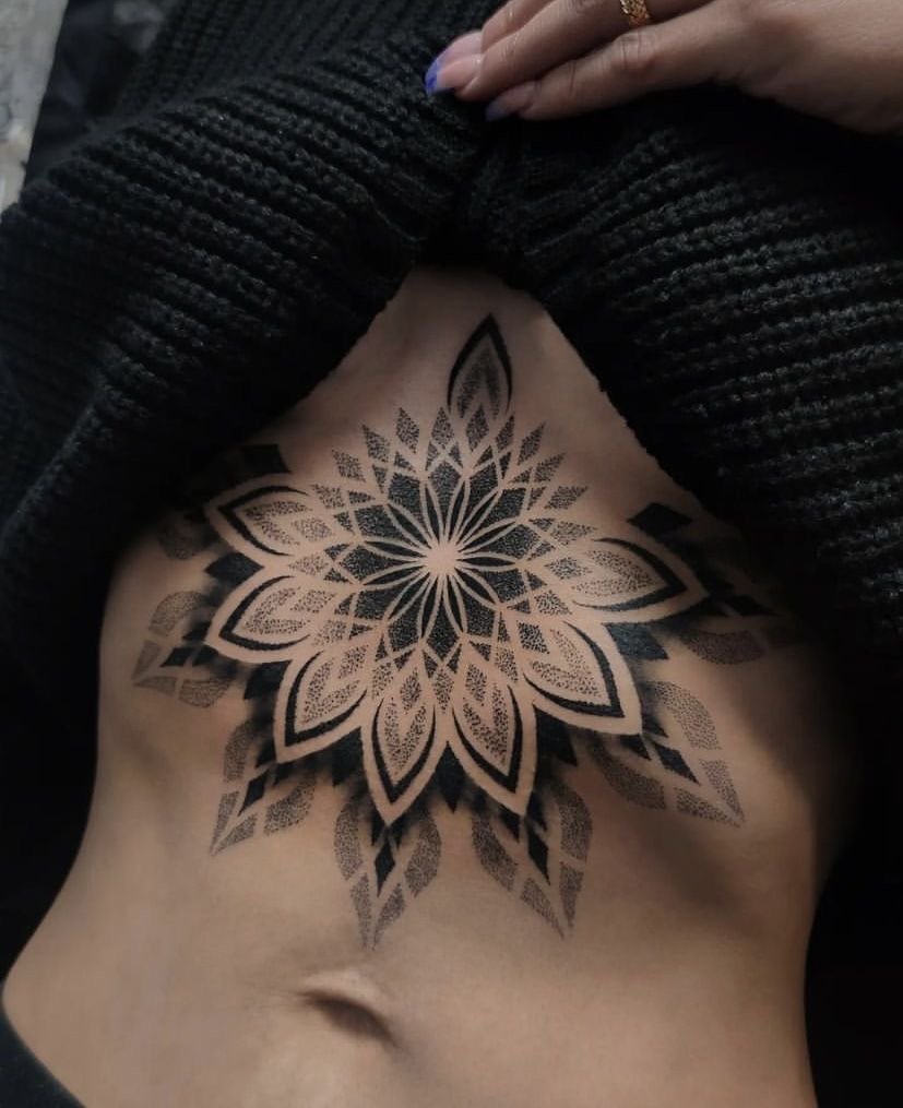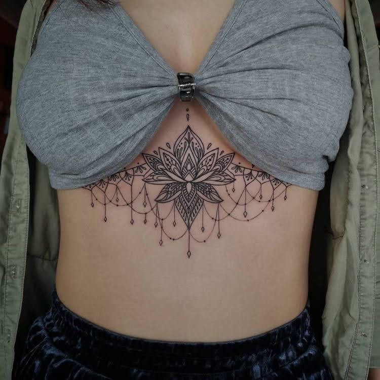 - Mandala-Motive: Symmetrische Muster, die perfekt entlang der Unterbrustlinie platziert werden und oft eine spirituelle oder philosophische Bedeutung tragen.