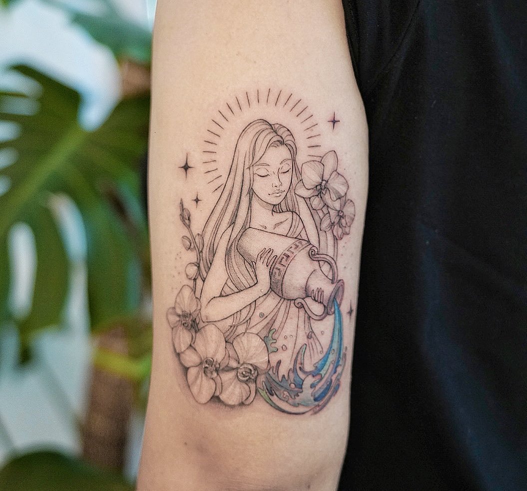 Wassermann Tätowierungen bieten eine große Bandbreite an kreativen und persönlichen Ausdrucksmöglichkeiten. Von minimalistischen Bildern der Sternbilder bis hin zu komplexen, futuristischen Kompositionen, die von Wasserströmen umspült werden - .jede Idee reflektiert eine einzigartige Perspektive auf den Charakter und die Werte der im Zeichen des Wassermanns Geborenen.