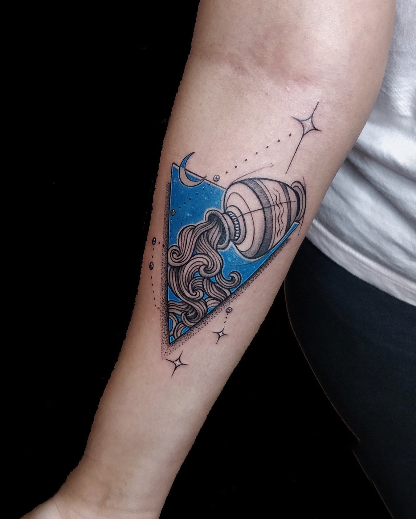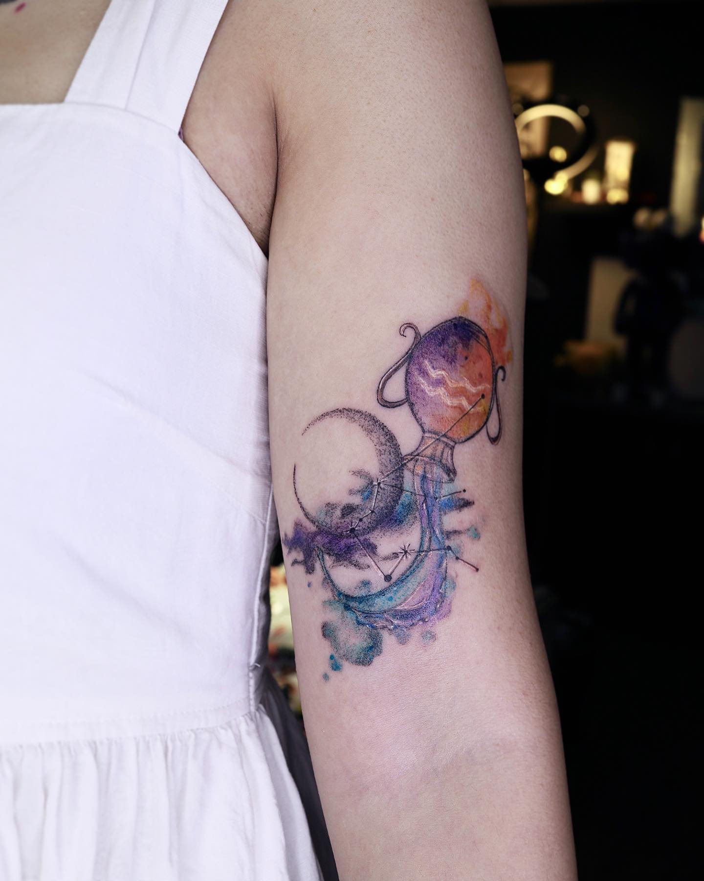 - Tattoo mit dem Planeten Erde. Viele Wassermänner sind von der Idee beseelt, die Welt zum Besseren zu verändern. Eine Tätowierung mit unserem Planeten kann ein Hinweis und eine zusätzliche Erinnerung an diese Ideen sein.
