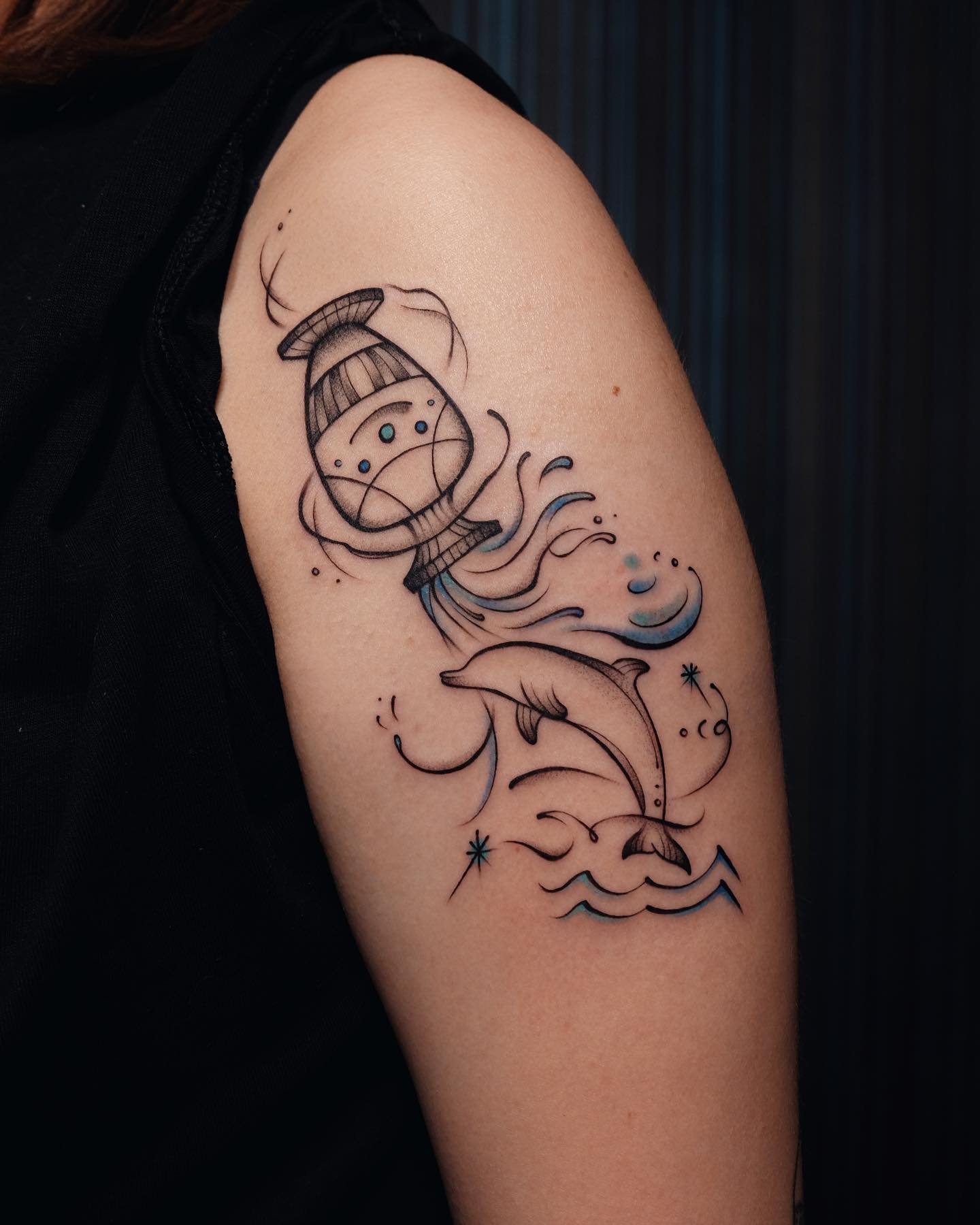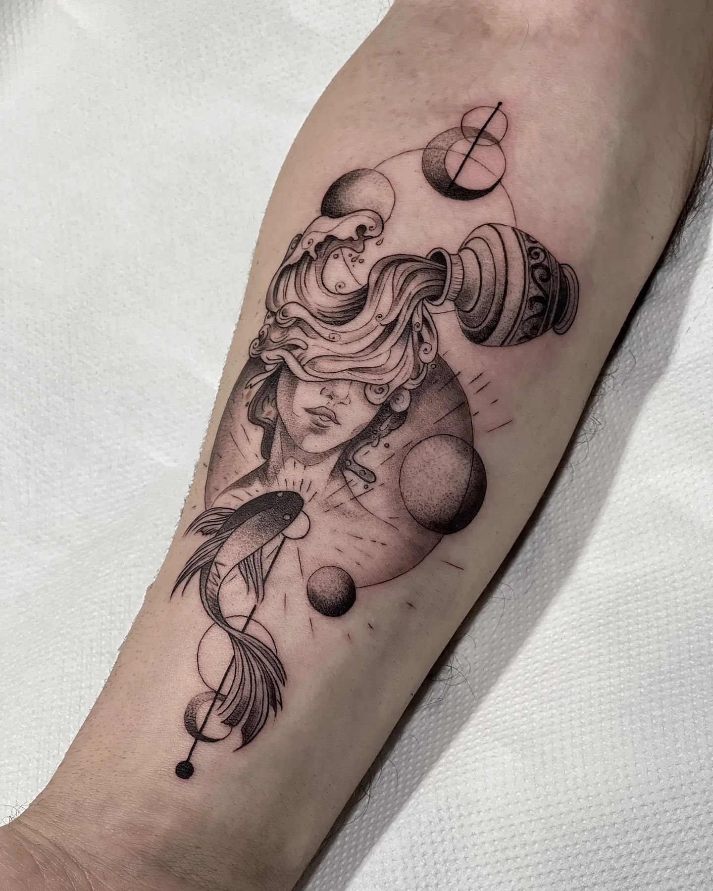 - Tattoos mit Elementen des Futurismus und Cyberpunk, die das Bild des Wassermanns neu definieren und ihm Dynamik und Faszination verleihen.