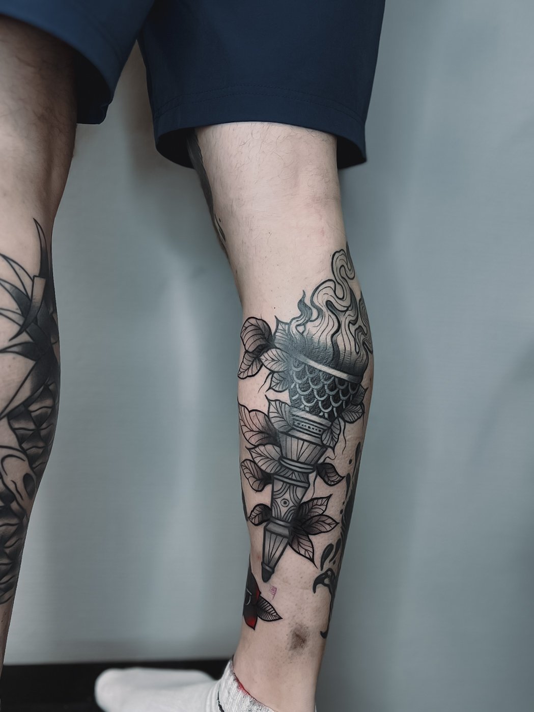 - Blackwork. Characterized by dense colors of elements, most often black pigment.