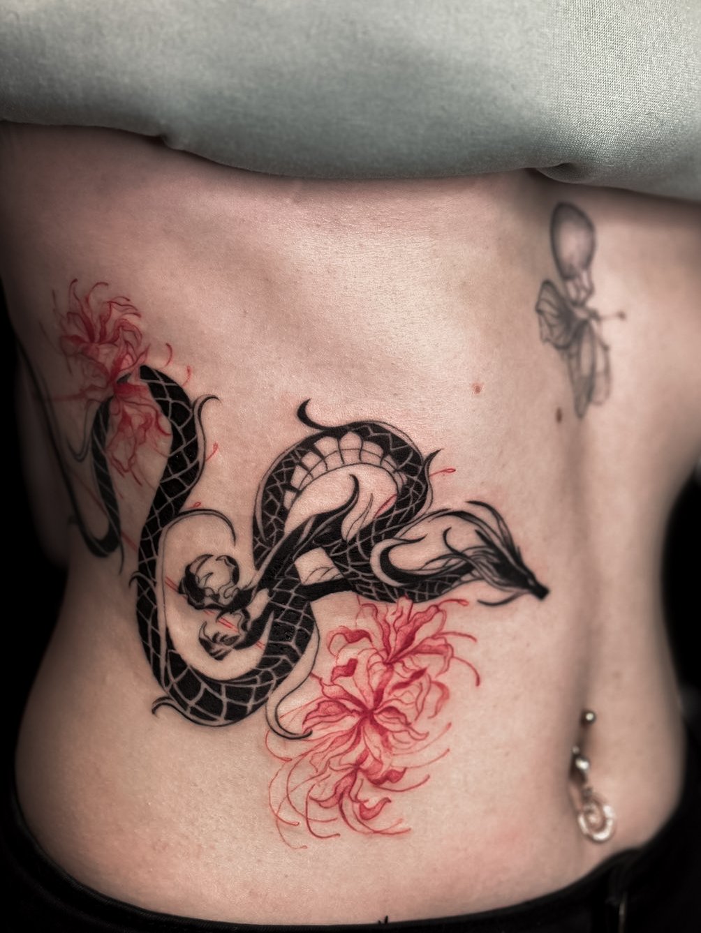 Ich arbeite gerne in diesen Stilen: Linework, Japanese und Black and Grey.