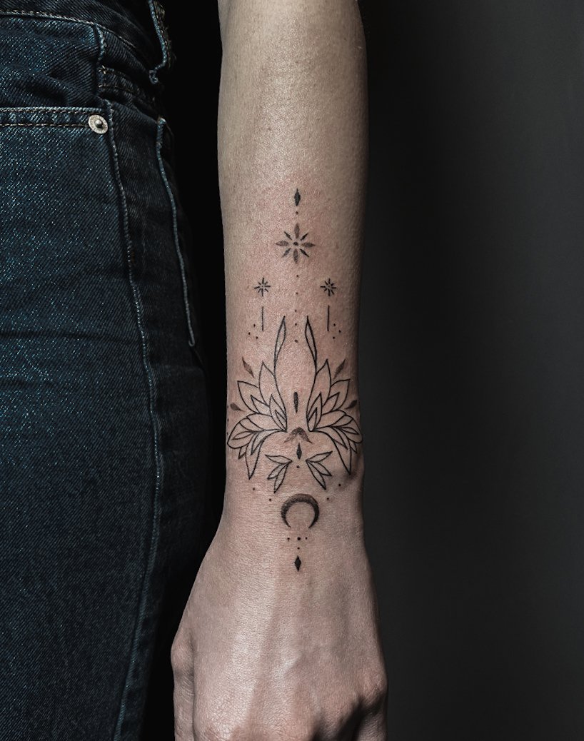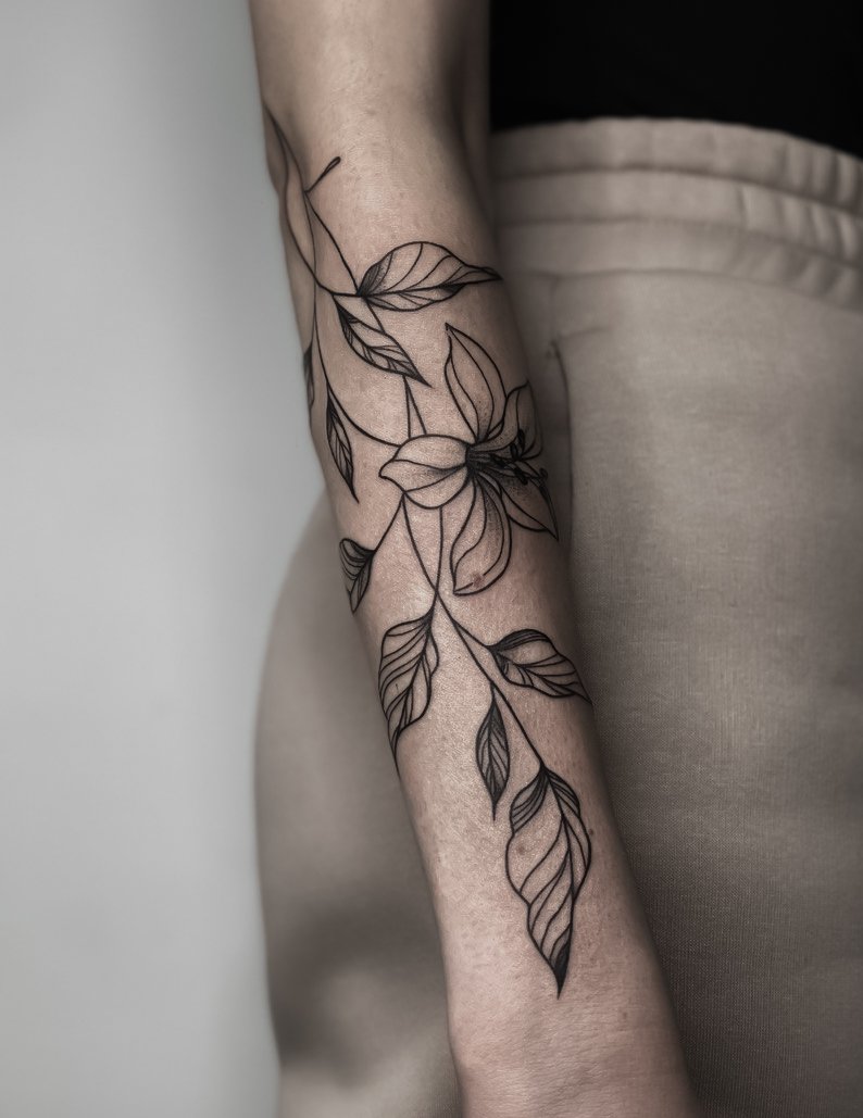 Olena begann ihre Ausbildung als Tätowiererin vor etwa 2 Jahren und hat seitdem hart gearbeitet, um ihre Fähigkeiten zu perfektionieren. Sie hat sich auf verschiedene Tätowierstile spezialisiert, darunter Linework, Blackwork, Geometrie, Lettering, Fineline und Graphic. Ihre Kunstwerke sind bekannt für ihre Präzision und Detailgenauigkeit, sowie für ihre beeindruckenden Designs.