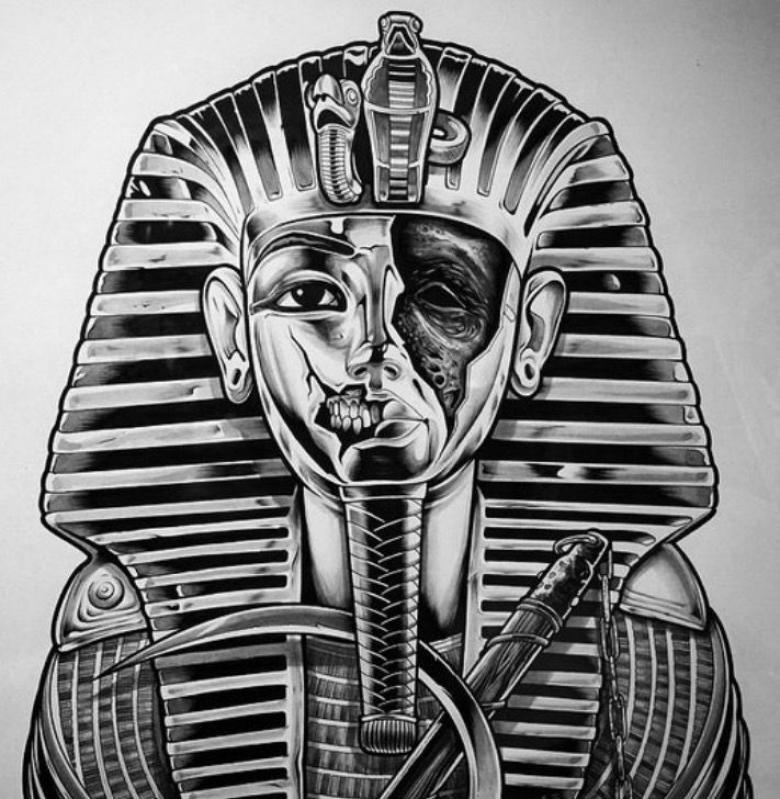 Für Liebhaber exotischer Werke eignen sich Mumien, die magische Kräfte besitzen. Dies wird eine auffällige Dekoration für Ihren Körper sein und die begleitenden Elemente wie eine Inschrift oder eine Pyramide werden das Werk ergänzen und einzigartig machen.