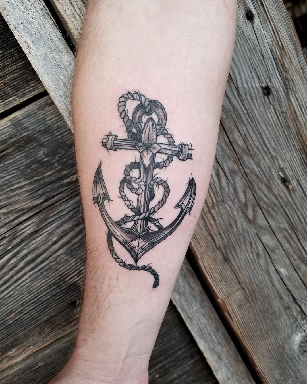 - Viele Männer entscheiden sich für ein Anker-Tattoo auf ihrem Rücken, Handgelenk oder Unterarm. Dieses Motiv steht für ihre Faszination für das Meer und die Wellen. Der Anker wird oft mit einem sicheren Hafen in Verbindung gebracht, einem Ort, den der Träger gerne aufsucht. Ein Anker-Tattoo bei Männern symbolisiert auch Treue gegenüber seiner Geliebten, seiner Familie und seinen Lebensprinzipien.