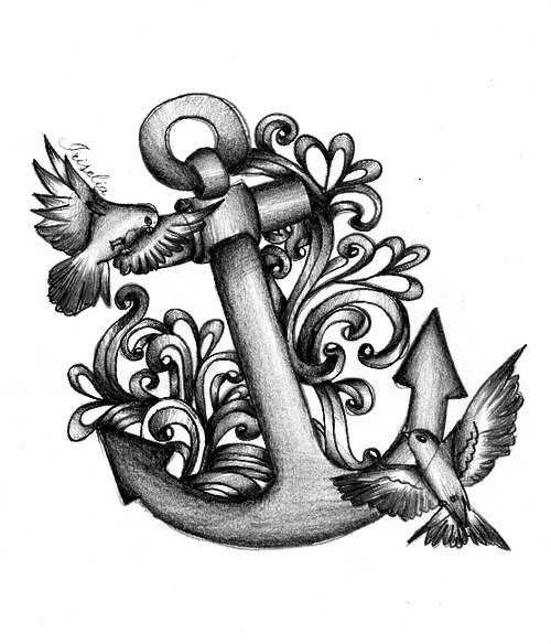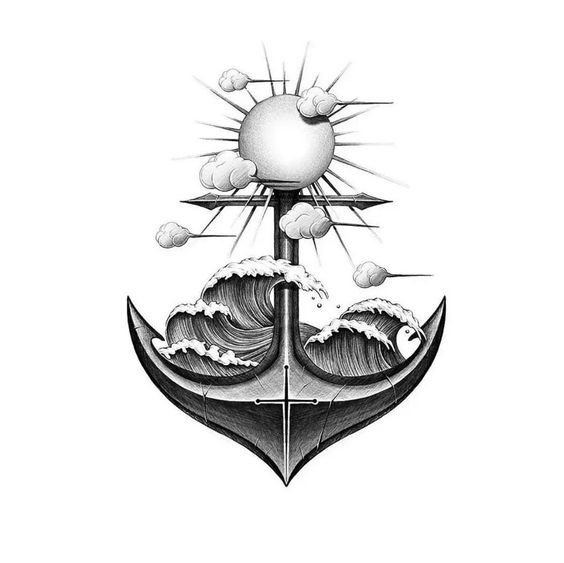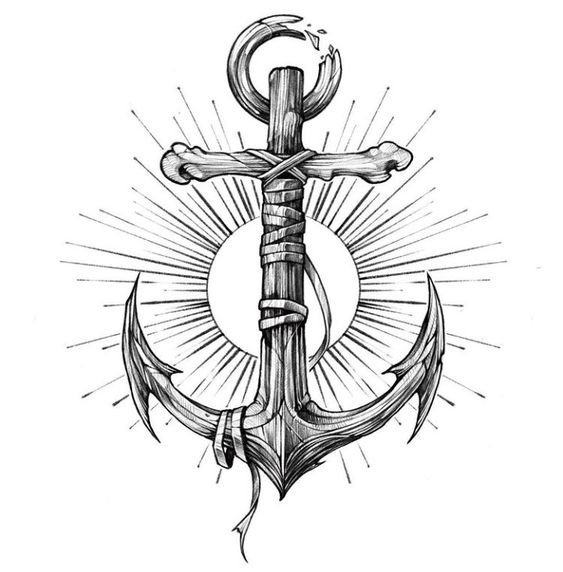 - Die Tattoo-Skizze eines Ankers trägt auch die Bezeichnung des Glaubens. Diese religiöse Bezeichnung rührt daher, dass die Spitze des Ankers mit ihrem Umriss einem Kreuz ähnelt.