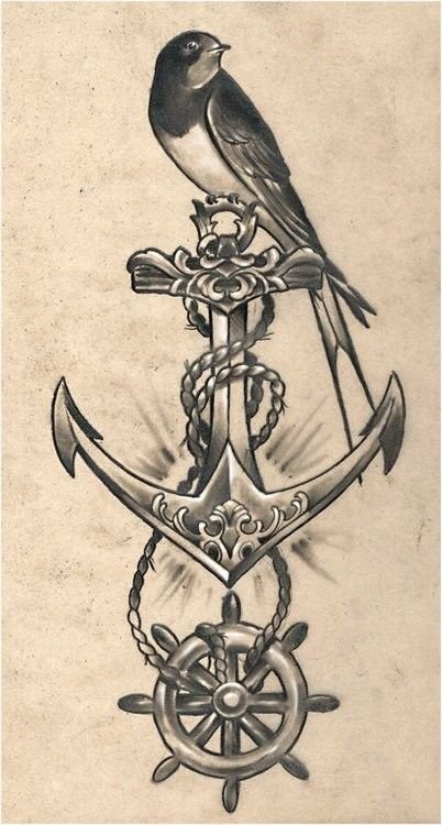 - Ein senkrechter Anker symbolisiert die Zuverlässigkeit des Trägers des Tattoos. Personen mit einem solchen Motiv gelten als feste Stütze und sind in jeder Lebenssituation unterstützend zur Seite.