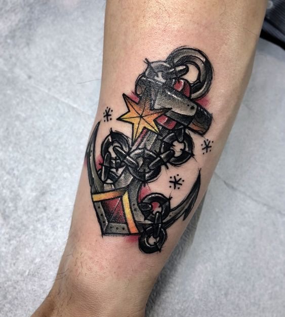 Die ersten, die ein Bild des Ankers auf ihren Körper gelegt haben, sind die Seeleute. Durch das Tattoo konnte man den echten Segler erkennen. Aber im Laufe der Zeit wurde Anker zu einem sehr beliebten Tattoo und schmückt jetzt die Körper vieler Menschen.
