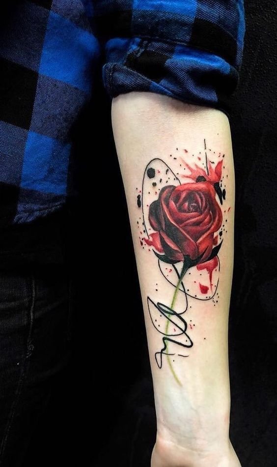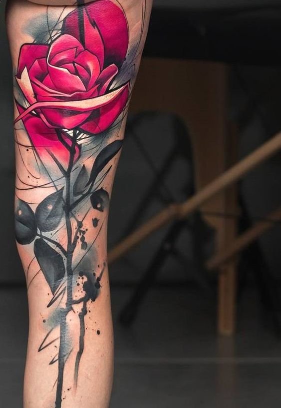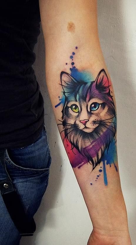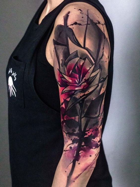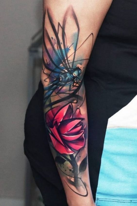 Die Kontur und die klaren Grenzen, wie bei anderen Tattoo, fehlen in Aquarellfarben praktisch, so dass dieser Stil so luftig und unkompliziert wirkt.