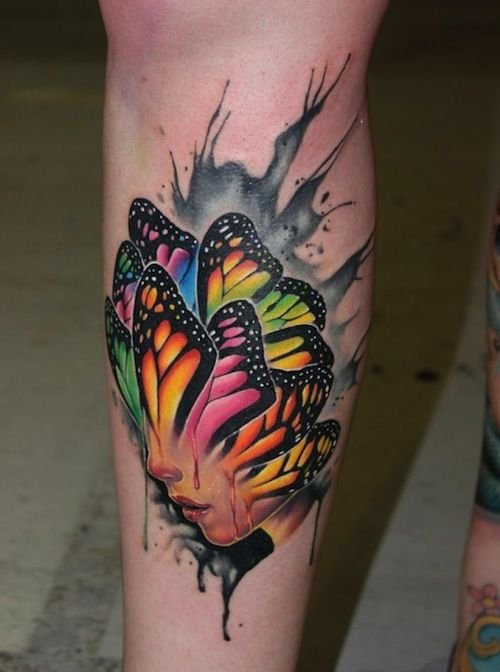Solche einzigartigen, farbenfrohen ähneln keinem Tätowierstil, der vom Meister mit normalen Werkzeugen erstellt wurde.