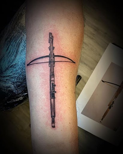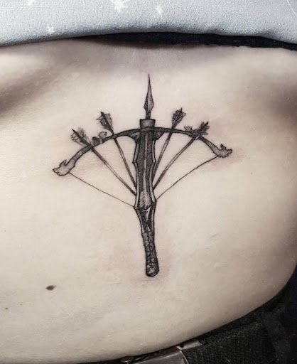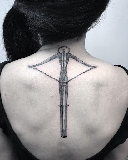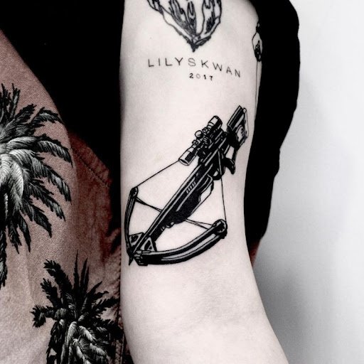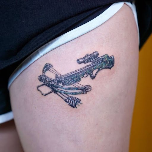 Ein Armbrust-Tattoo kann auch als Symbol für Sieg interpretiert werden, wobei dieser Sieg im Bewältigen von Lebensproblemen und der Suche nach Lösungen für sie liegen kann. Dies kann sich auf einen neuen Job, eine Beförderung oder einen Karrierewechsel beziehen. Daher wird die Darstellung einer Armbrust gleichermaßen von Frauen und Männern gewählt. Die Feinheit, die im Wesen des Bildes liegt, kann im Tattoo selbst vermittelt werden. Der Stil des Tattoos kann je nach Vorliebe des Kunden variieren: lebendig und farbenfroh, monochrom und ernsthaft. Beachten Sie, dass ein zarteres Design oft besser auf der Haut einer Frau wirkt, während ein realistisches, voluminöses Tattoo den Stil eines Mannes gut ergänzt.