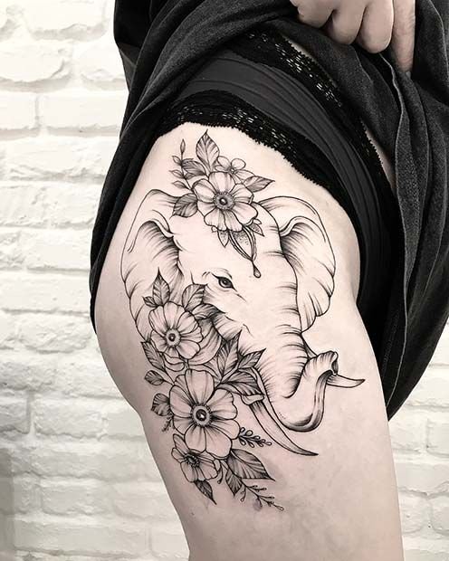 Ein Elefant symbolisiert Weisheit und Stärke, daher ist ein solches Tattoo ideal für zielstrebige und selbstbewusste Menschen. Das Bild eines indischen Elefanten wird oft auf größeren Körperpartien wie dem Rücken, der Schulter, dem Arm, dem Oberschenkel oder dem Bauch platziert. Die Farbgebung kann variieren, von Schwarzweiß bis zu lebhaften, bunten Tattoos. In jedem Fall strahlt das Elefantentattoo positive Energie und Wohlbefinden aus.