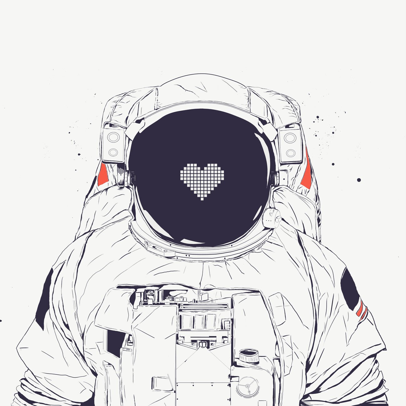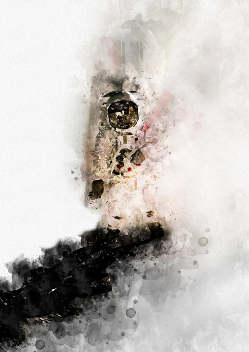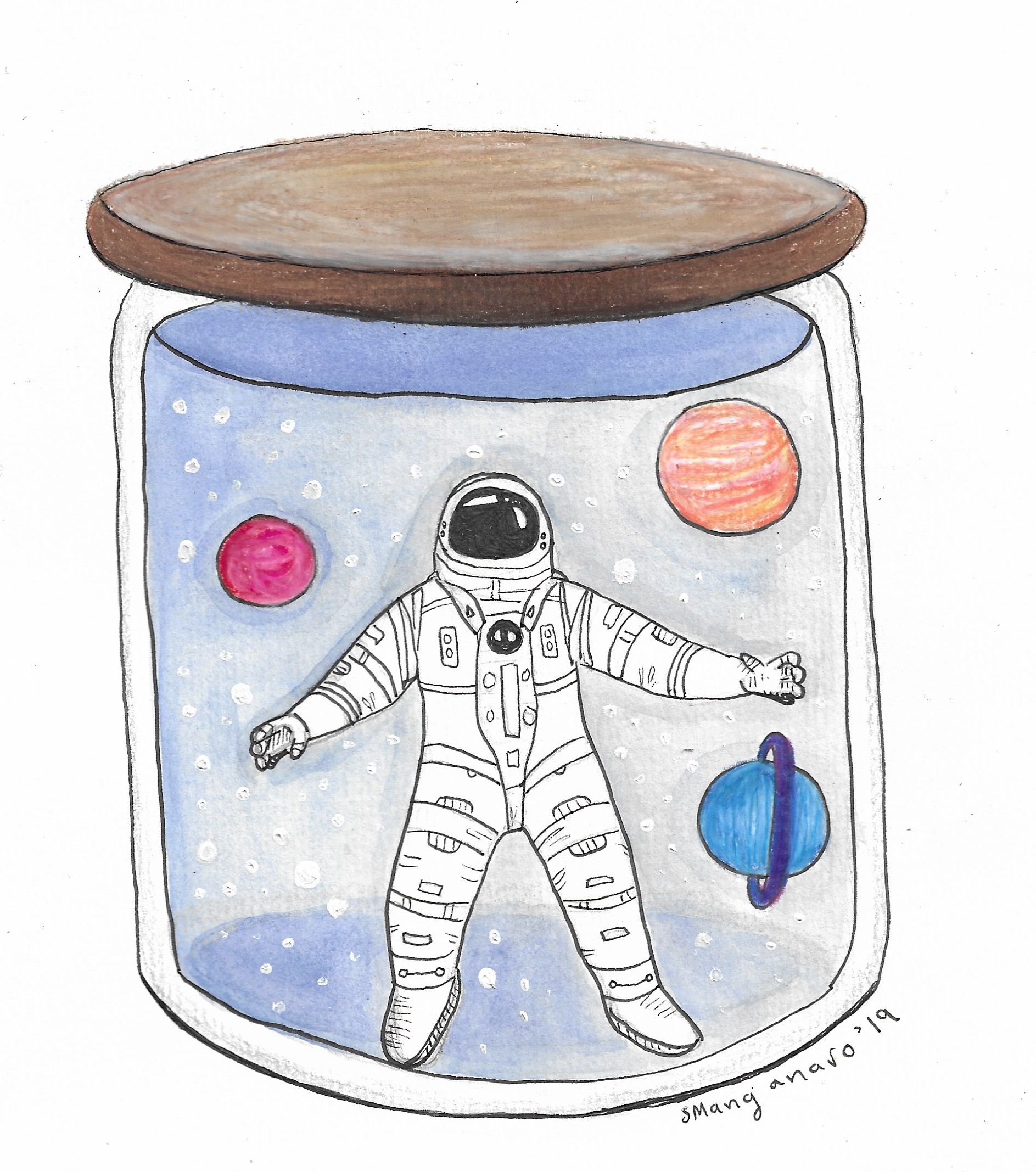 Im nächsten Fall ist auf dem Körper eine Zeichnung eines Astronauten ohne charakteristische Merkmale abgebildet, die nur den Stil von Helm und Raumanzug zeigt, um den Beruf zu betonen.