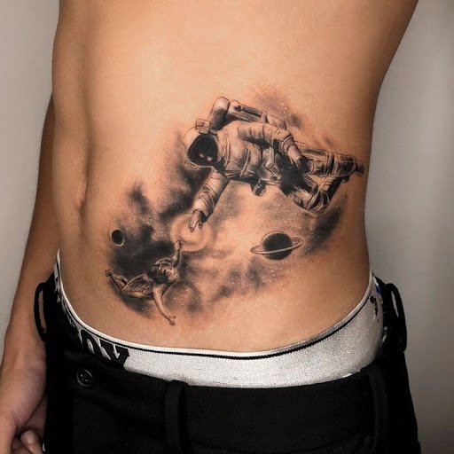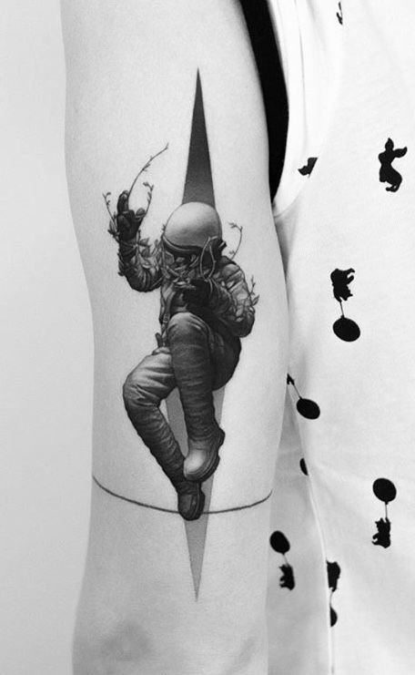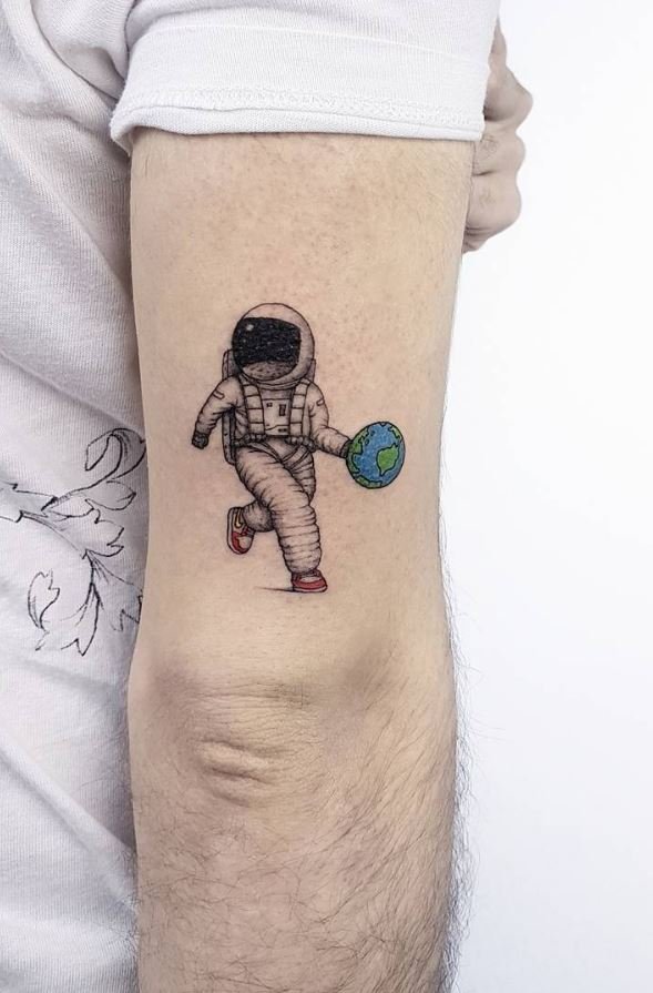 Ein Tattoo in Form eines Astronauten für einen Mann wird auffälliger und voluminöser.
