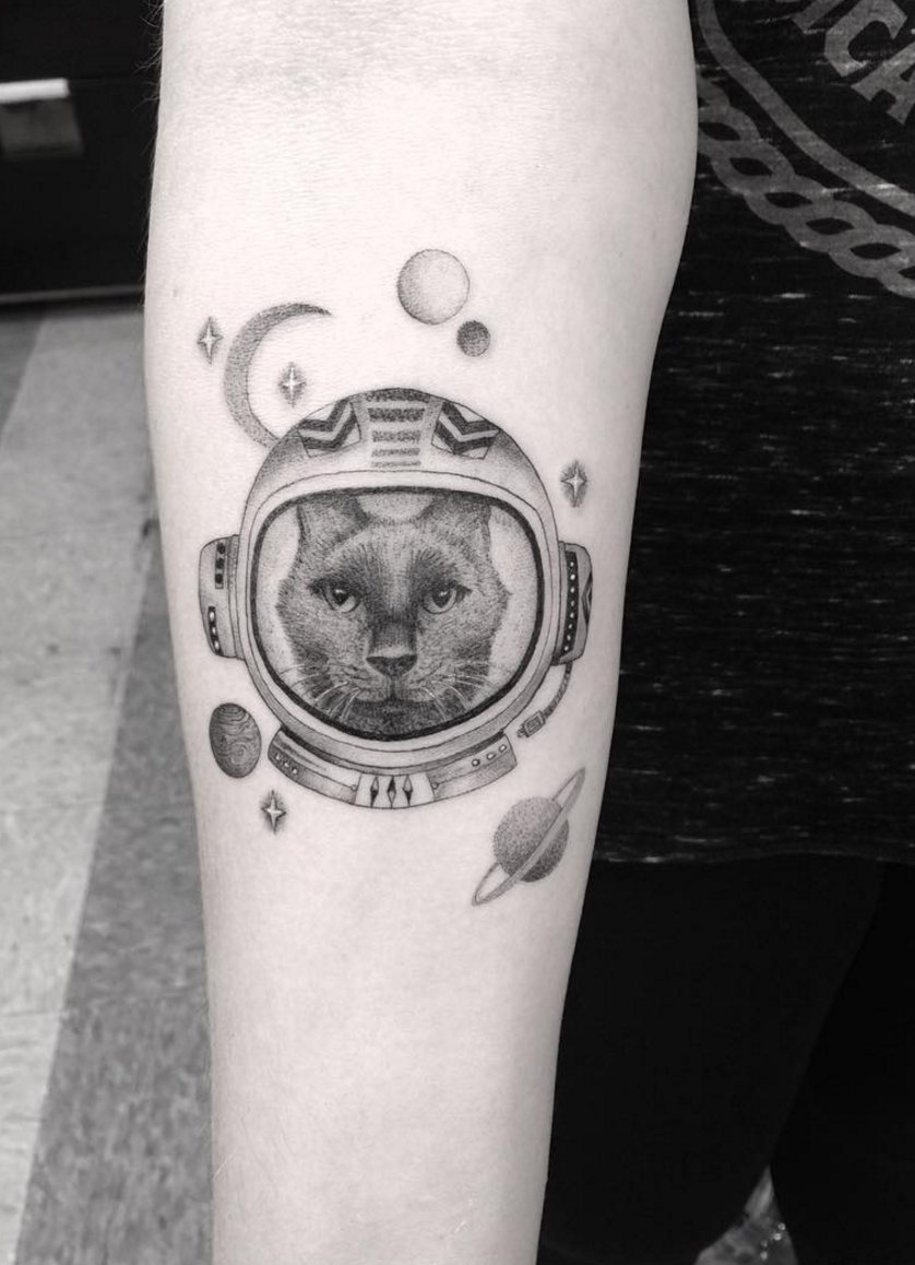 Vor einigen Jahrzehnten hätte man wohl die meisten Jungen gefragt, welchen Beruf sie sich wünschen würden, und die Antwort wäre "Astronaut" gewesen. Trotz dieser Träume blieben die meisten Kinder im postsowjetischen Raum jedoch Träumer. Ein Astronauten-Tattoo ermöglicht es, sich durch das Bild an die Vorlieben und Träume der Kindheit zu erinnern. Der Weltraum übt immer noch eine enorme Faszination aus und zieht viele Menschen mit seiner Unbekanntheit an, was viele dazu veranlasst, sich thematische Tattoos stechen zu lassen.