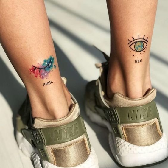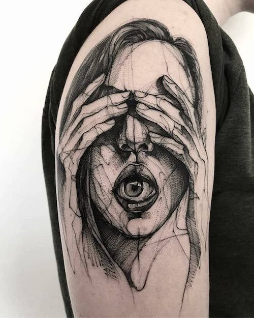 Tätowierung mit diesem Bild ist bei beiden Geschlechtern sehr gefragt. Tattoo werden in einer Vielzahl von Farben, Stilen und Techniken durchgeführt, neben ausgestopften Bildern nicht nur des menschlichen Auges, sondern auch der Augen von Vögeln, Tieren und sogar Comicfiguren. Oft kann man ein Bild von einem weinenden Auge finden, mit Hilfe eines solchen Tattoos verlassen die Menschen normalerweise die Erinnerung an verstorbene Angehörige oder verlorene Haustiere. Ein Tattoo, bei dem das Bild des Auges mit einem Baum kombiniert wird, bedeutet Gesundheit, Fruchtbarkeit und Stabilität.