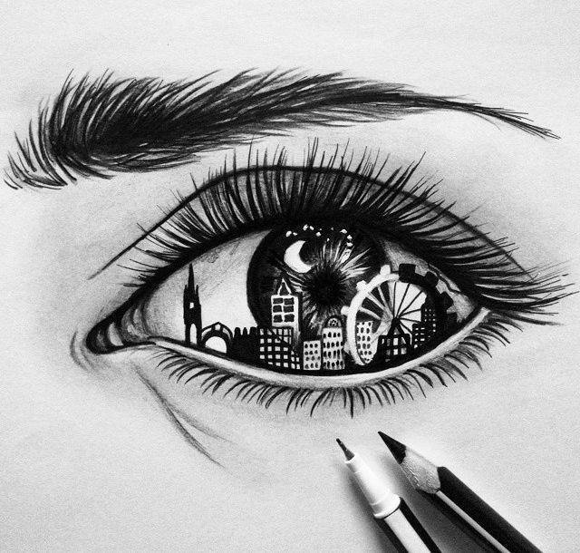 - Menschen mit türkischer Kultur sind der Meinung, dass das Bild des Auges Glück bringt. In solchen Skizzen befindet sich das Auge normalerweise innerhalb der menschlichen Handfläche.