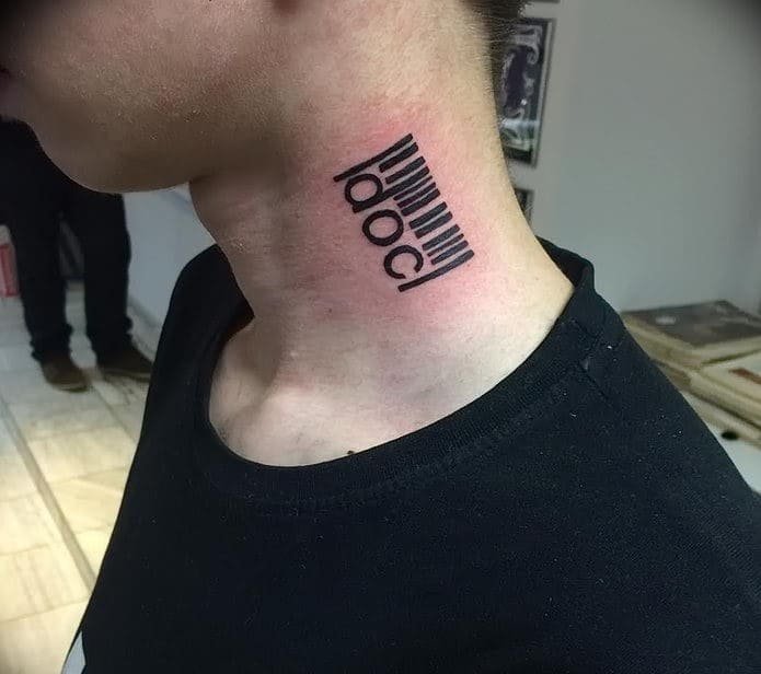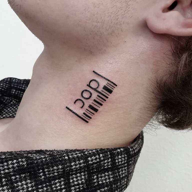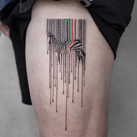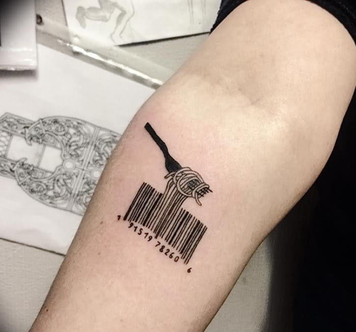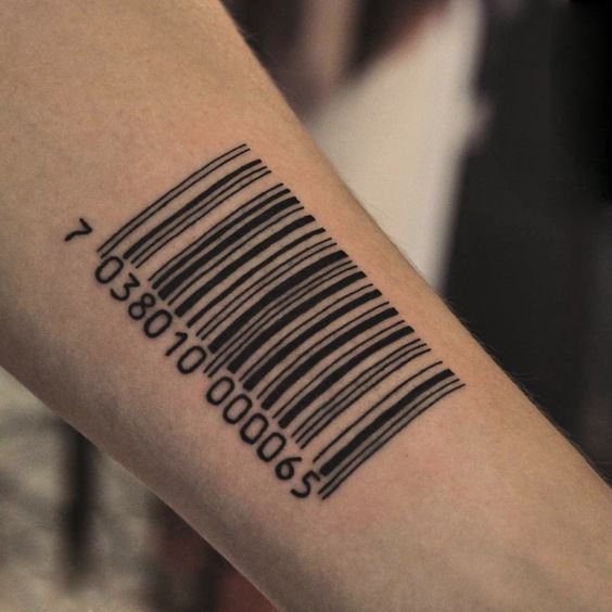 - Tattoos mit einem Barcode-Muster enthalten oft wichtige Daten für eine Person, wie zum Beispiel den Tag ihrer Geburt, die Geburt eines Kindes, eines geliebten Menschen oder das Hochzeitsdatum. Diese Daten sind oft unter den Streifen des Barcodes dargestellt.