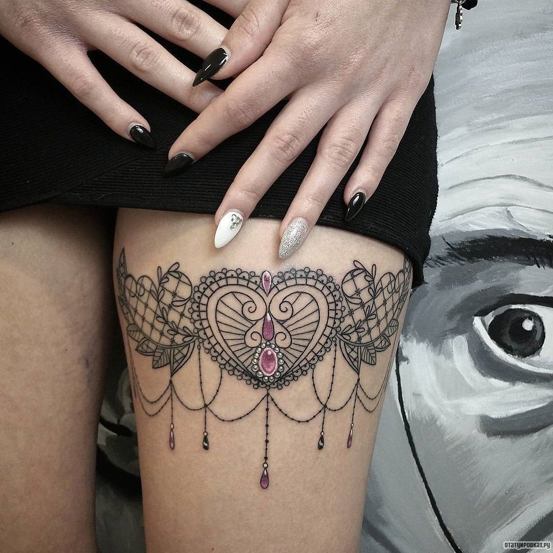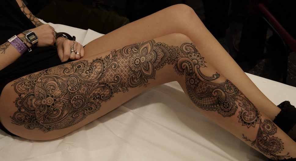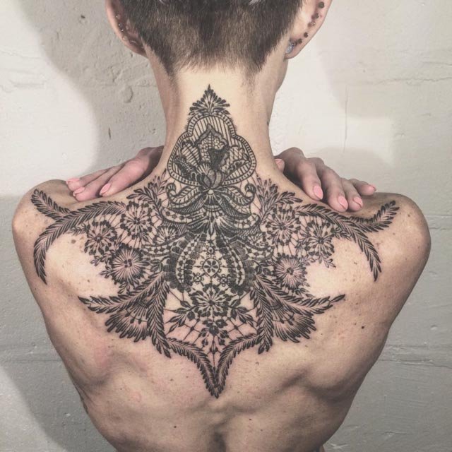 In Tattoodesigns finden sich oft Motive von Spitzen mit zusätzlichen Mustern, Steinen und Anhängern. Dieser Stil wird in der Regel von Frauen bevorzugt, die ihre Hals-, Handgelenks- und Beinbereiche mit verschiedenen Schnörkeln schmücken. Neben Spitzen sind auch häufig Motive von Vögeln, Schmetterlingen und Blumen zu sehen. Die Ausführung zeichnet sich durch die Komplexität der Technik, eine Vielzahl von Mustern und Edelsteinen aus. Egal, für welches Motiv Sie sich entscheiden (sei es eine Blume, ein Hirsch, ein Pfau, usw.), mit Hilfe eines erfahrenen Tätowierers wird jede Zeichnung zu einem Kunstwerk.