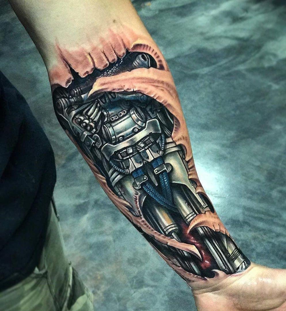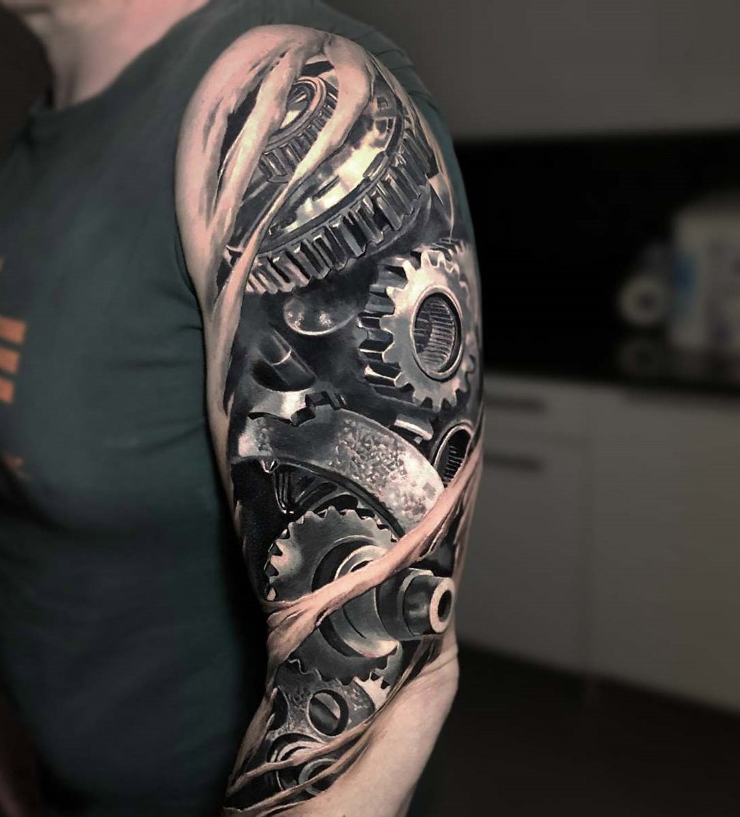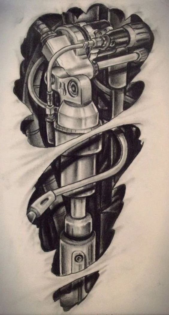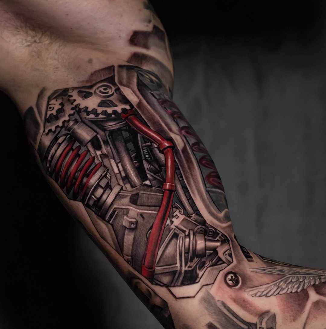 Dieses Feld umfasst viele Stilvariationen, in denen Tätowierarbeiten ausgeführt werden, eines der am weitesten verbreiteten ist die Biomechanik. Dieser Stil ist leicht zu erkennen: Der Tätowierer ersetzt die Fragmente des menschlichen Körpers durch mechanische Strukturen. Bei den Tattoo der Biomechanik werden sichtbare Lücken im Hautgewebe sichtbar, durch die man den Mechanismus sehen kann. Der Stil ist ziemlich spektakulär und sieht immer gut aus.