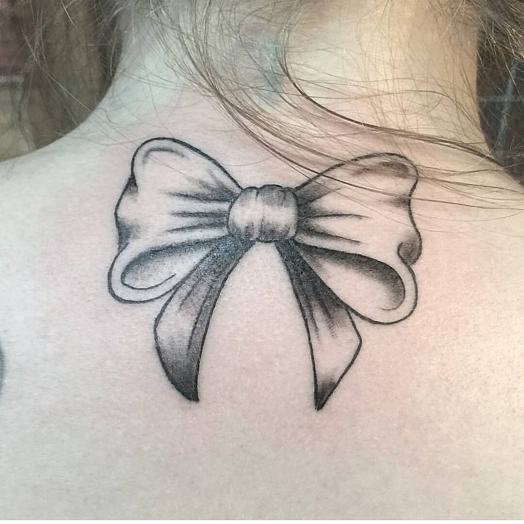 Der Tattoo-Schleife eignet sich auch für bescheidene Frauen, da das Bild überhaupt keine negativen, sondern im Gegenteil nur positive Zeichen aufweist. Darüber hinaus kann das Tattoo klein gemacht werden, so dass es bei Bedarf leicht vor übermäßigen Augen verborgen werden kann. Am häufigsten füllen Frauen dieses Muster vorzugsweise an den Handgelenken, Knöcheln, Füßen, Mägen, unter oder an der Brustseite. Es sieht sehr originell und ordentlich Schleife im Nacken aus. Normalerweise wird das Bild des Schleife als Beilage verwendet oder als Grundlage für ein Tattoo verwendet, so dass das Bild heller und farbiger wird.