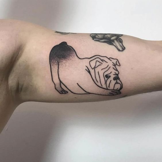 Es ist interessant zu wissen, dass in Amerika Marines mit einer Bulldogge tätowiert werden, und in England spricht das Bild einer Bulldogge auf einem menschlichen Körper von seiner Zugehörigkeit zum Erbe.