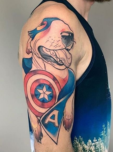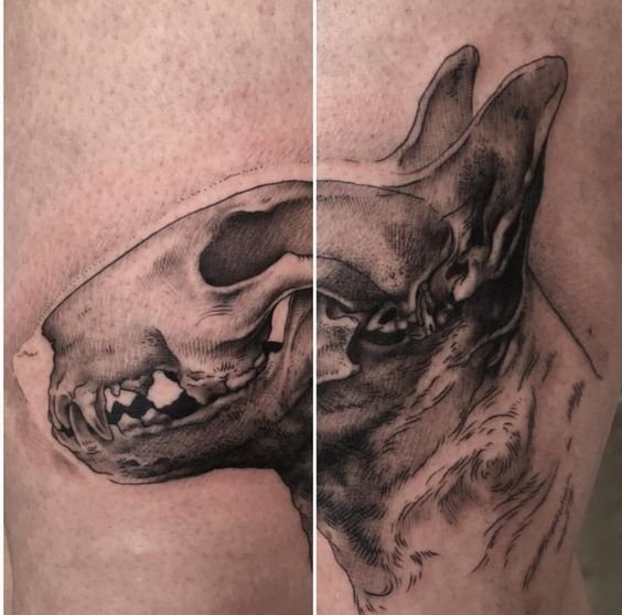 - Zielstrebigkeit - diese Hunderasse ist nicht schüchtern, dieses Bild auf dem menschlichen Körper deutet darauf hin, dass der Besitzer der Tätowierung sicherlich das Ziel erreichen wird;