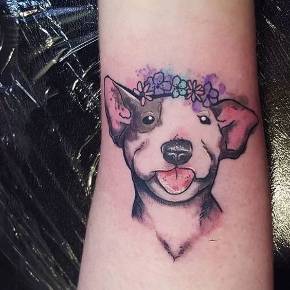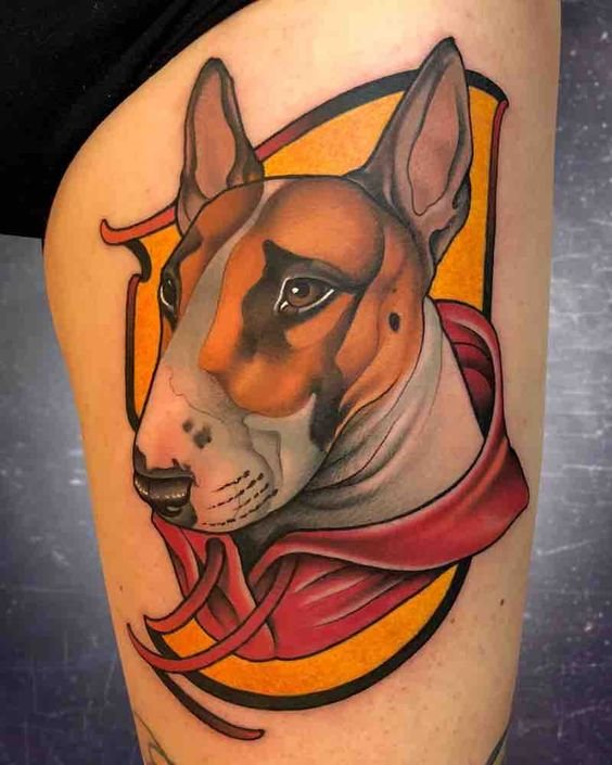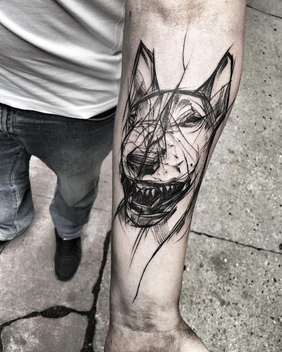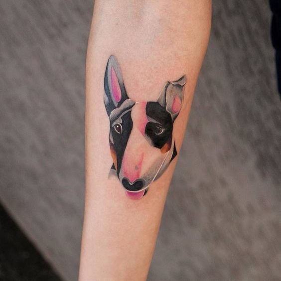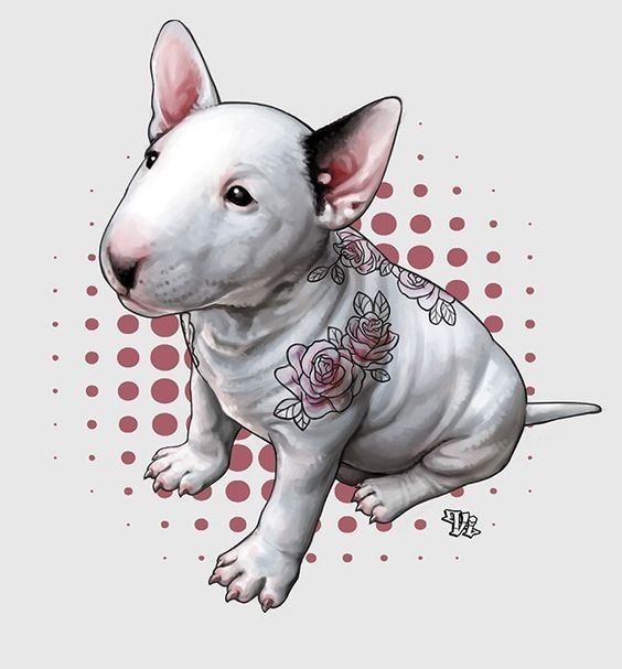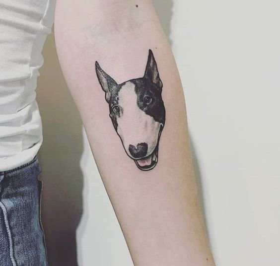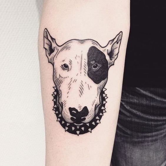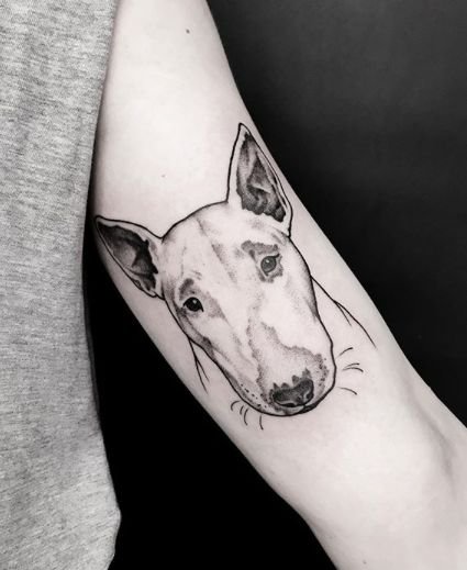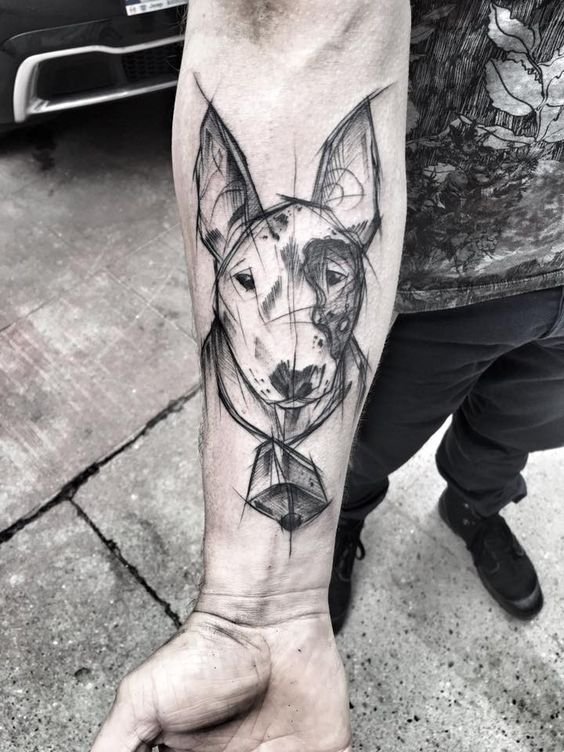 Eine Tätowierungsskizze eines Bullterriers kann auch über die Liebe einer Person zur Tierwelt, über die Zuneigung zu Hunden oder die Liebe zu einer bestimmten Rasse sprechen. Neben den positiven Eigenschaften des Körperbildes kann der