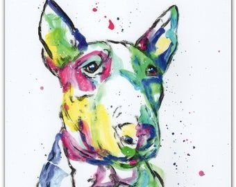 Tätowierungsbullterrier wird in Farbe und in Schwarzweiss durchgeführt.