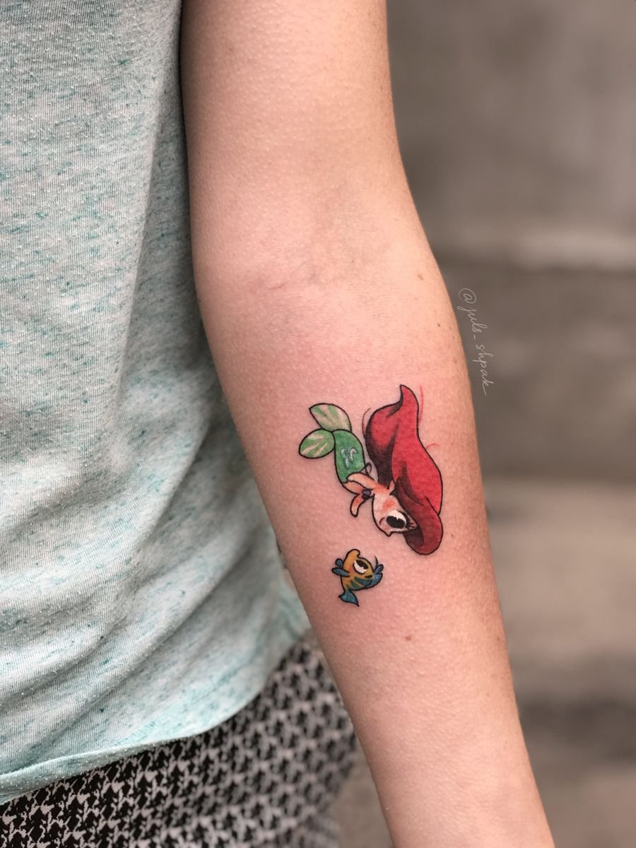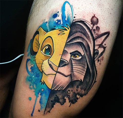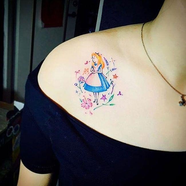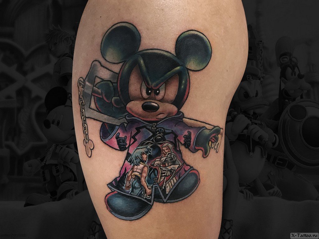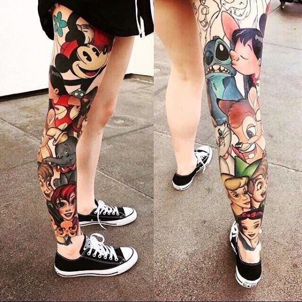 Die Welt von Disney ist eine besondere Richtung, Bilder von Mickey Mouse und seiner Freundin werden oft für gepaarte Tätowierungen verwendet. Viele Mädchen ziehen es vor, ihren Körper mit Bildern von Disney-Prinzessinnen zu schmücken.