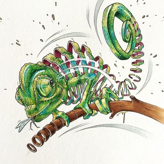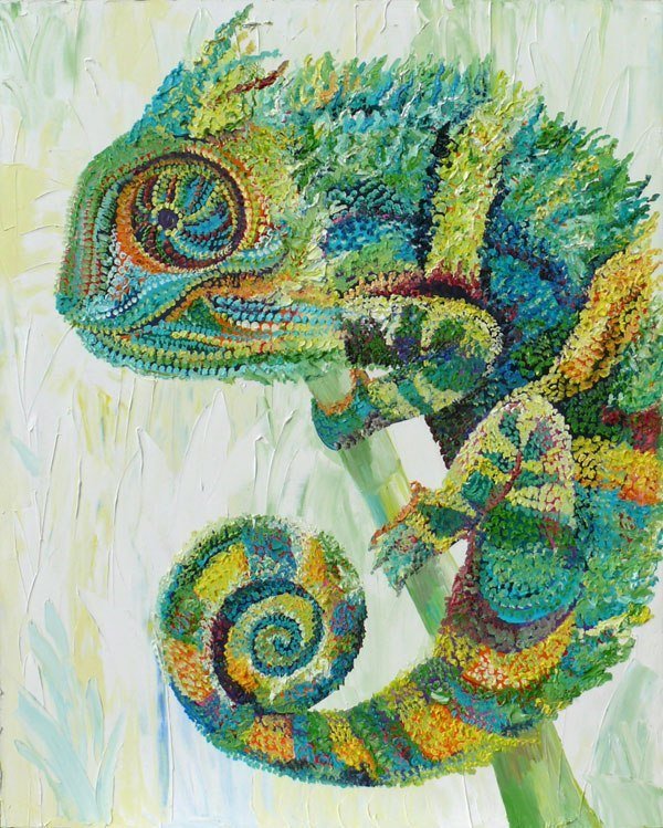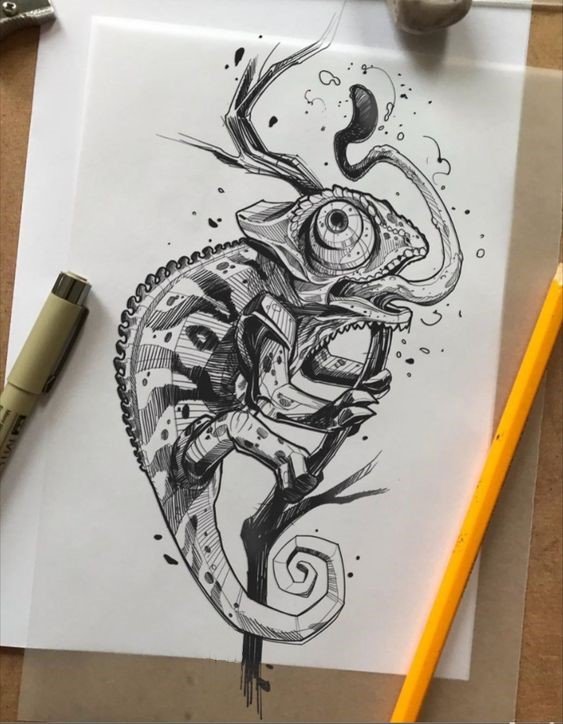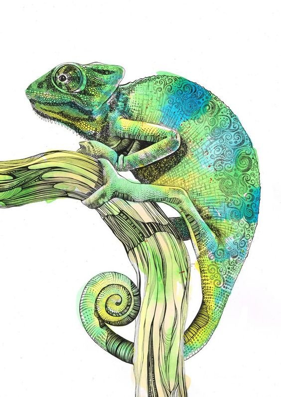 Das Bild eines Chamäleons wird in jeder Stilinterpretation gleich gut und interessant aussehen.