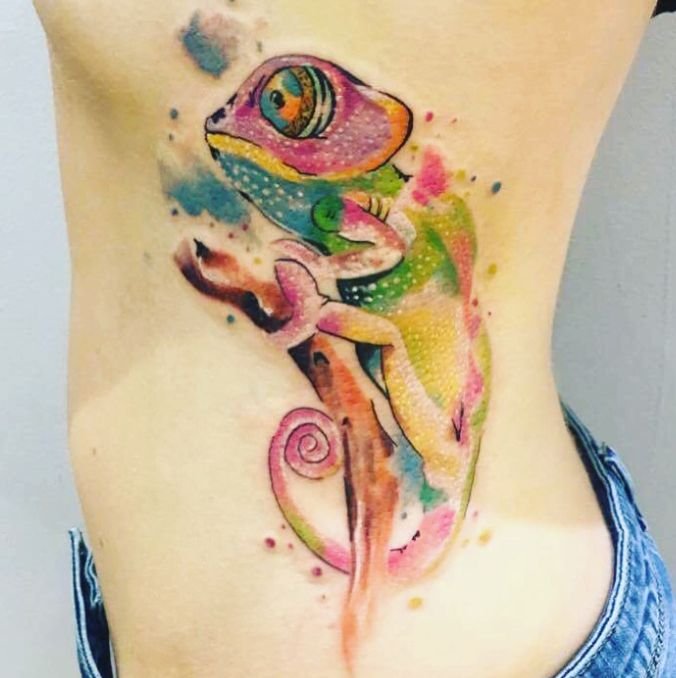 Chamäleon Tattoo kann überall am Körper platziert werden.
