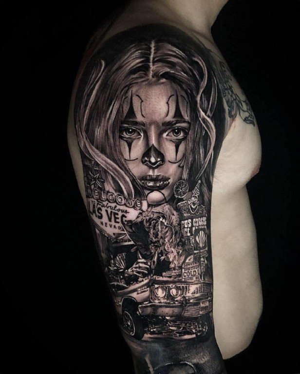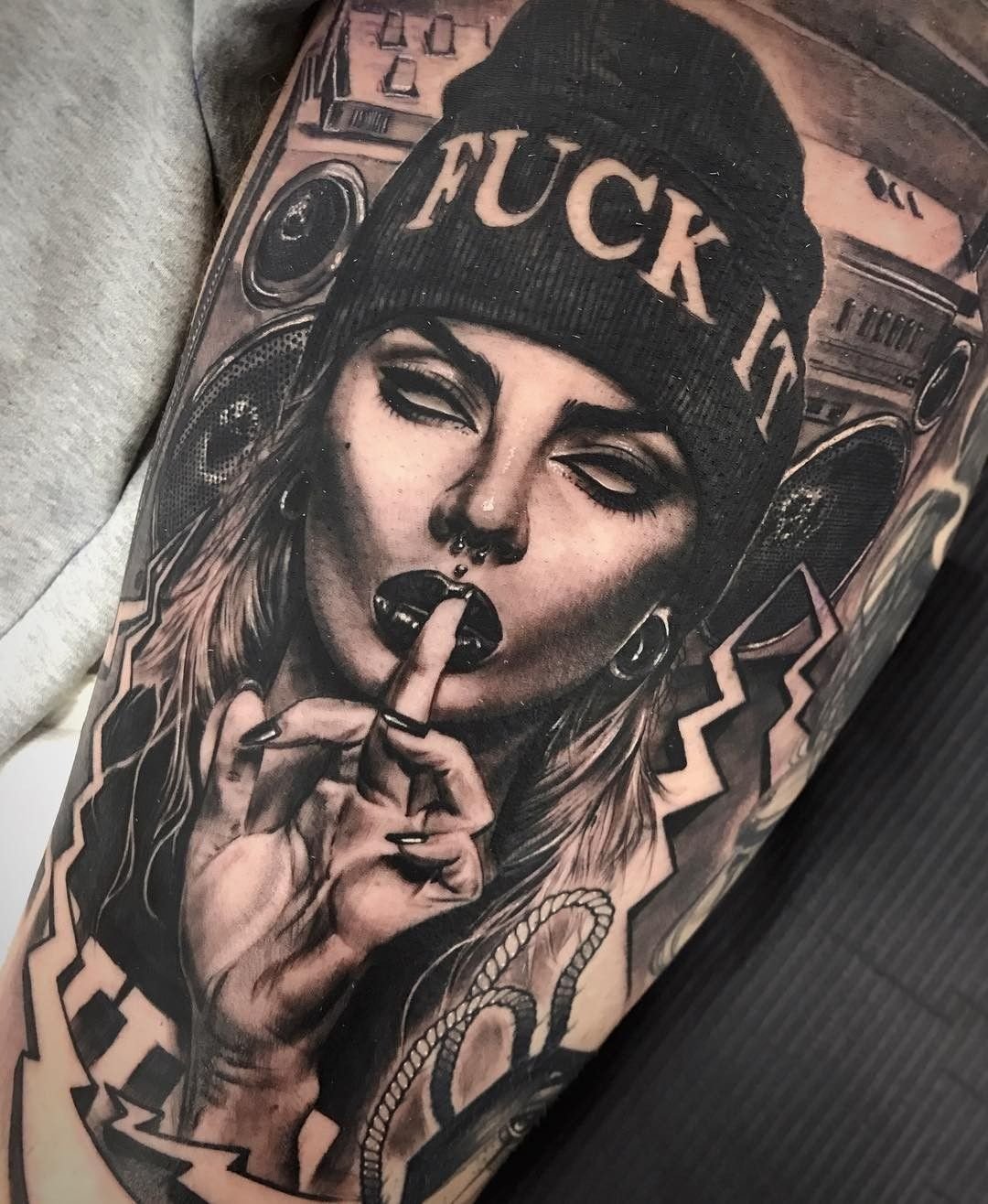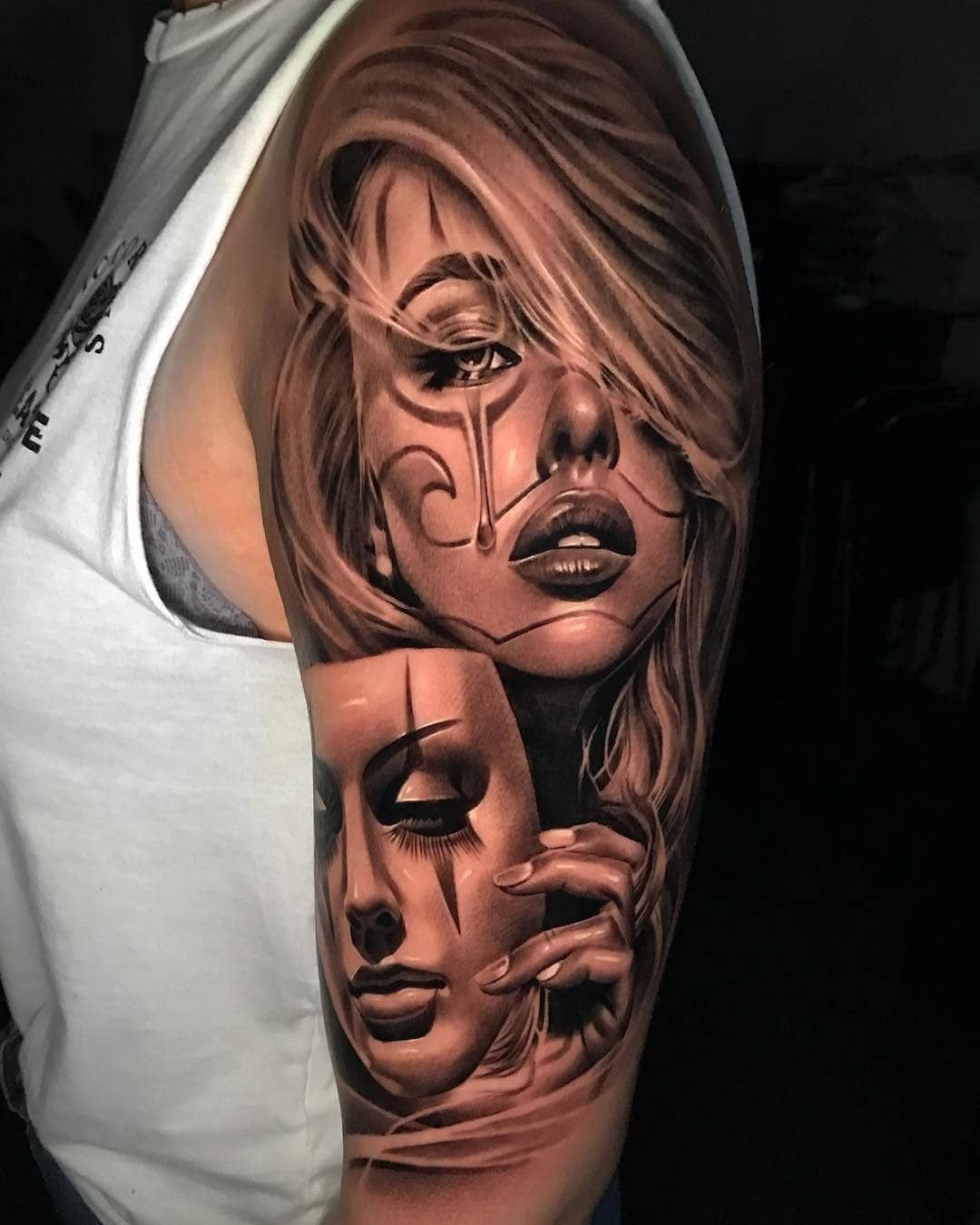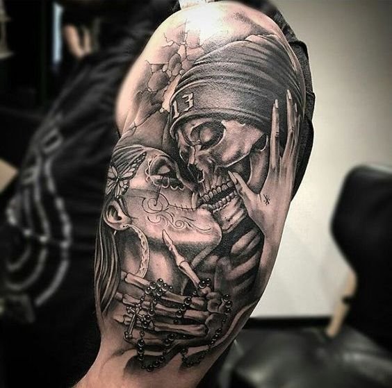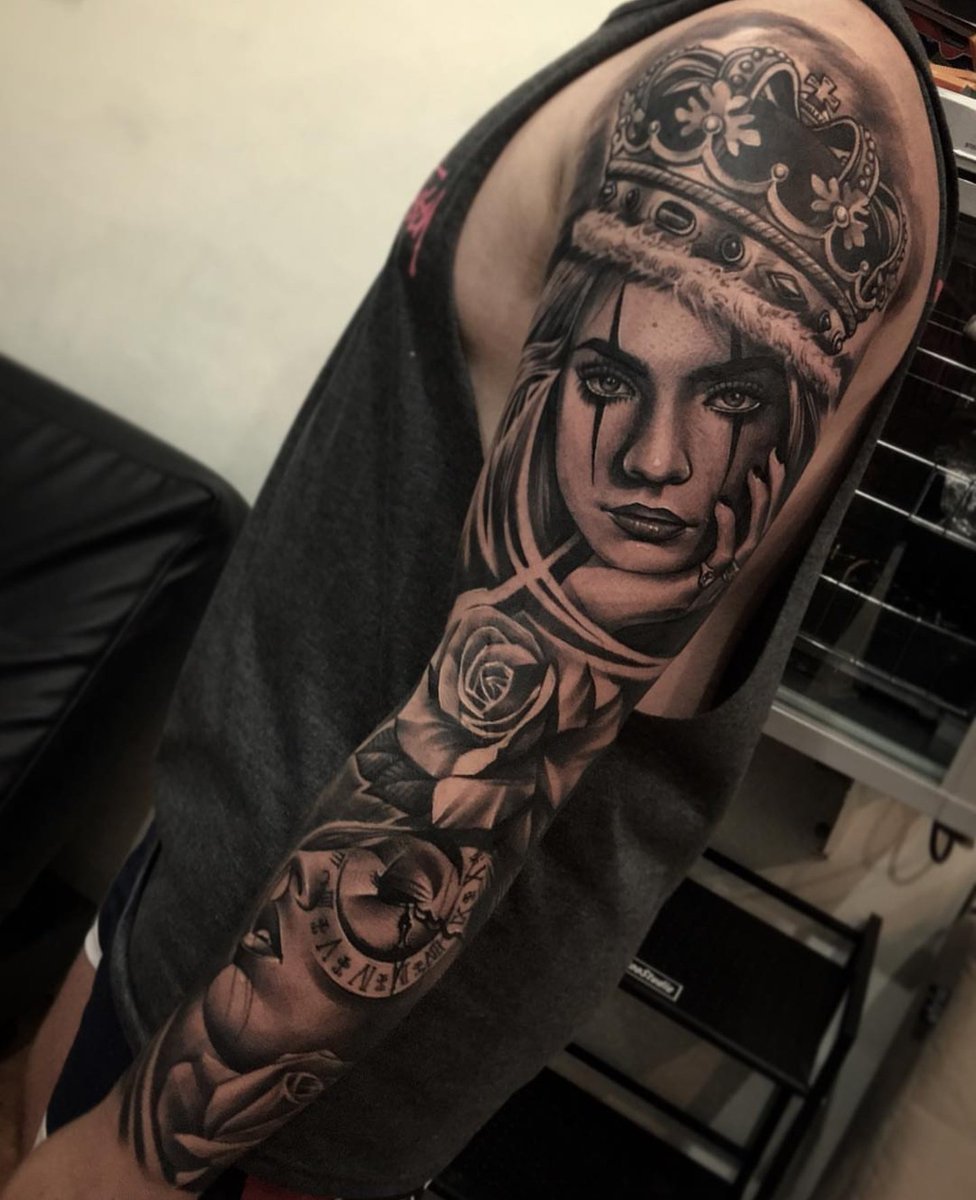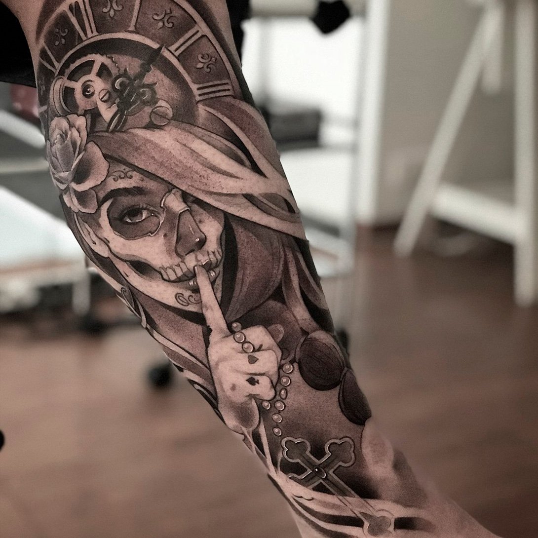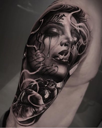 Dieser Stil ist relativ jung im Bereich der Tätowierung, aber trotzdem erkennbar und sehr beliebt. Das Chicano-Tattoo hat seine eigene Entstehungsgeschichte. Da die genaue Übersetzung des Wortes "Chicano" selbst nicht bekannt ist, ist eine der naheliegendsten Übersetzungen "Mexicano", die sich auf amerikanische Mexikaner bezieht.