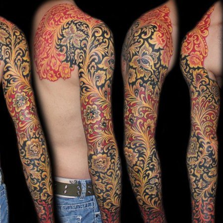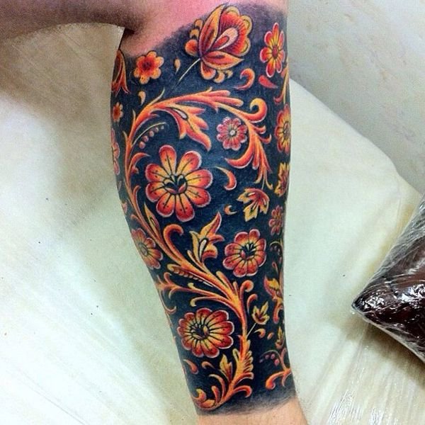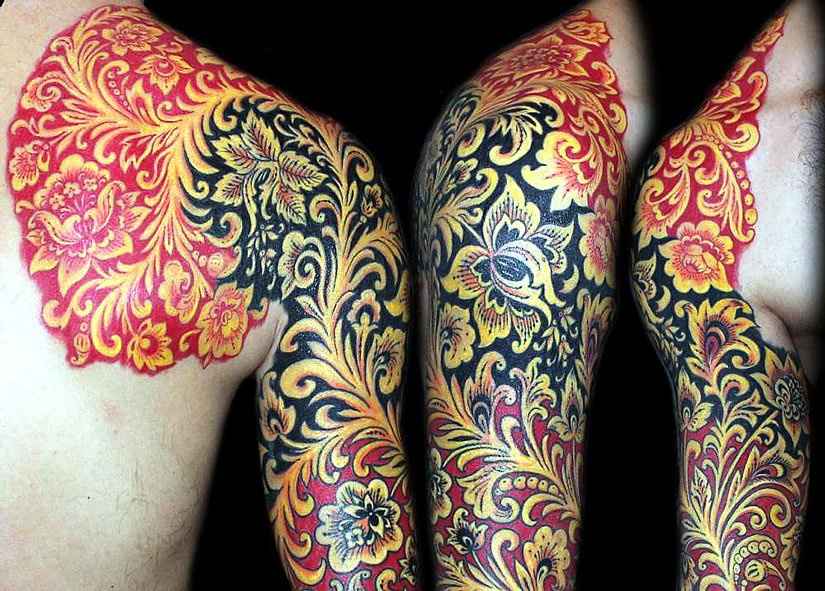 Für ein Chochloma-Tattoo sind in der Regel großflächige Stellen notwendig, damit die Zeichnungen ihre gesamte Interpretation vollständig wiedergeben und spektakulär aussehen.