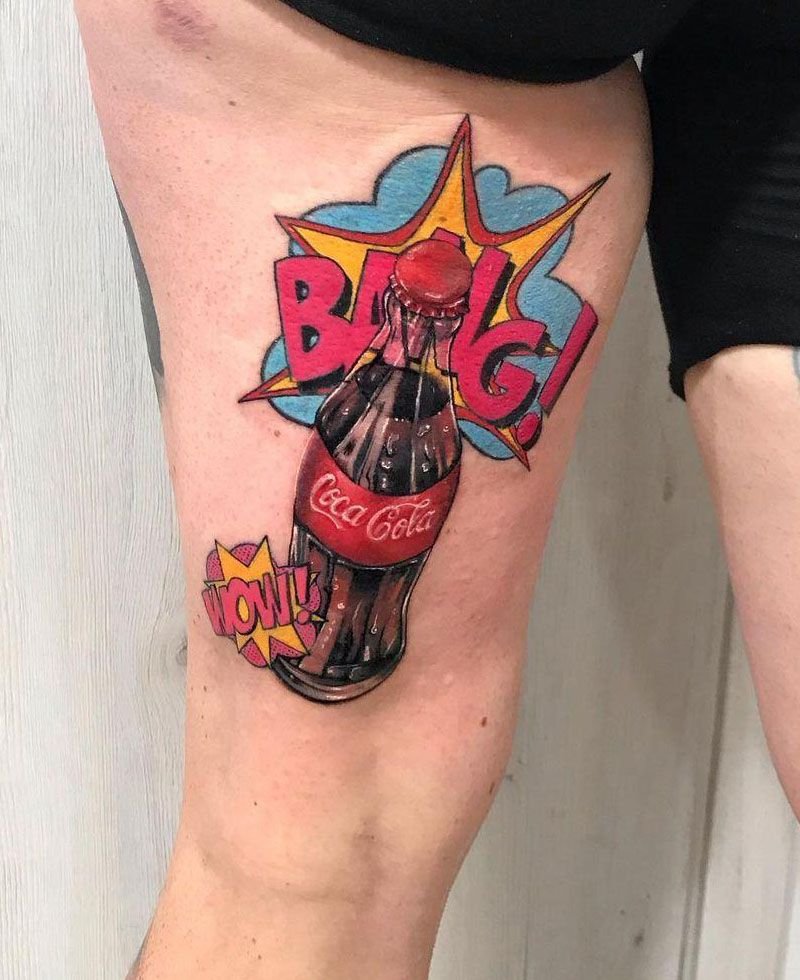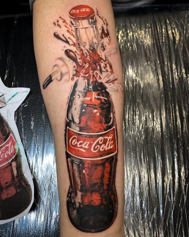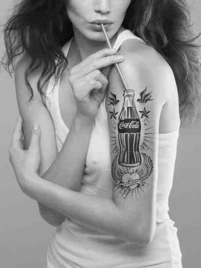 Eine weitere Botschaft ist die Popularisierung der Popkultur, die vor einiger Zeit in Mode war und jetzt nachlässt, und die Entstehung neuer anziehender Tattoos kann sie unterstützen oder zumindest daran erinnern, dass sie existierte. Die Popkultur selbst umfasst viele Elemente, aber ein wesentlicher Bestandteil davon ist die Präsenz von Marken, zu denen auch Coca-Cola gehört.