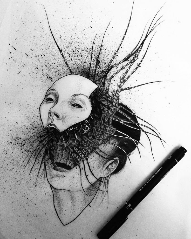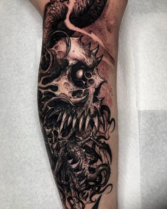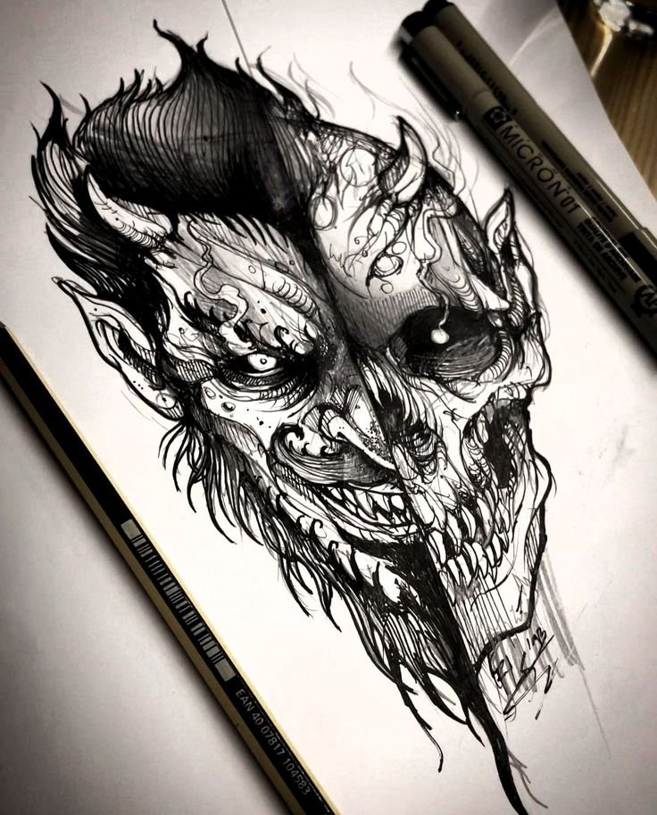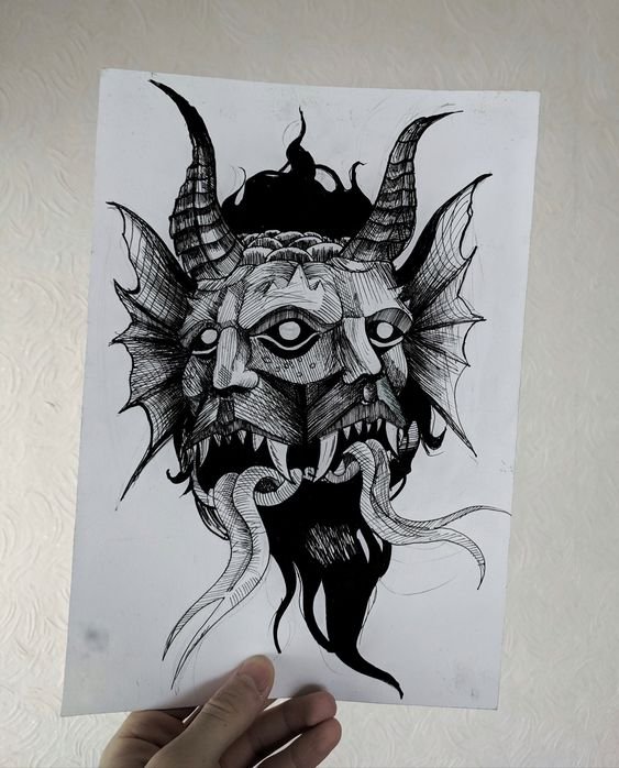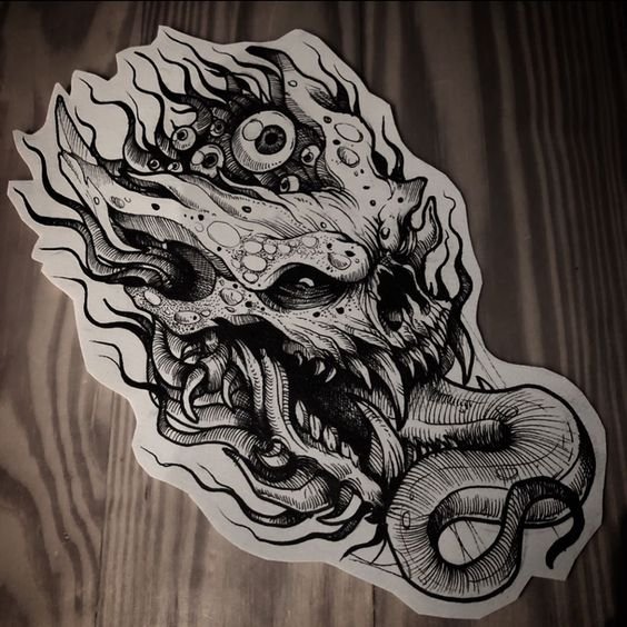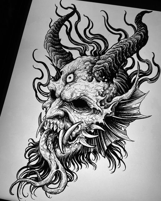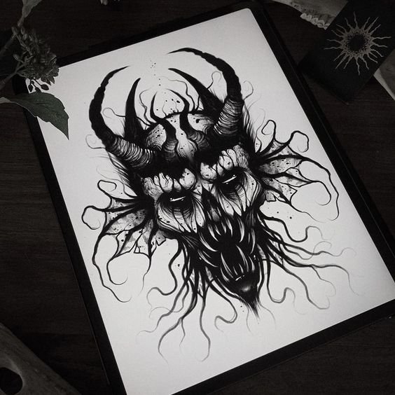 Unter den vielfältigen Tattoo-Skizzen gibt es manchmal eine Nachfrage nach unheimlichen und erschreckenden Motiven. Dazu gehören Bilder von dämonischen Kreaturen.