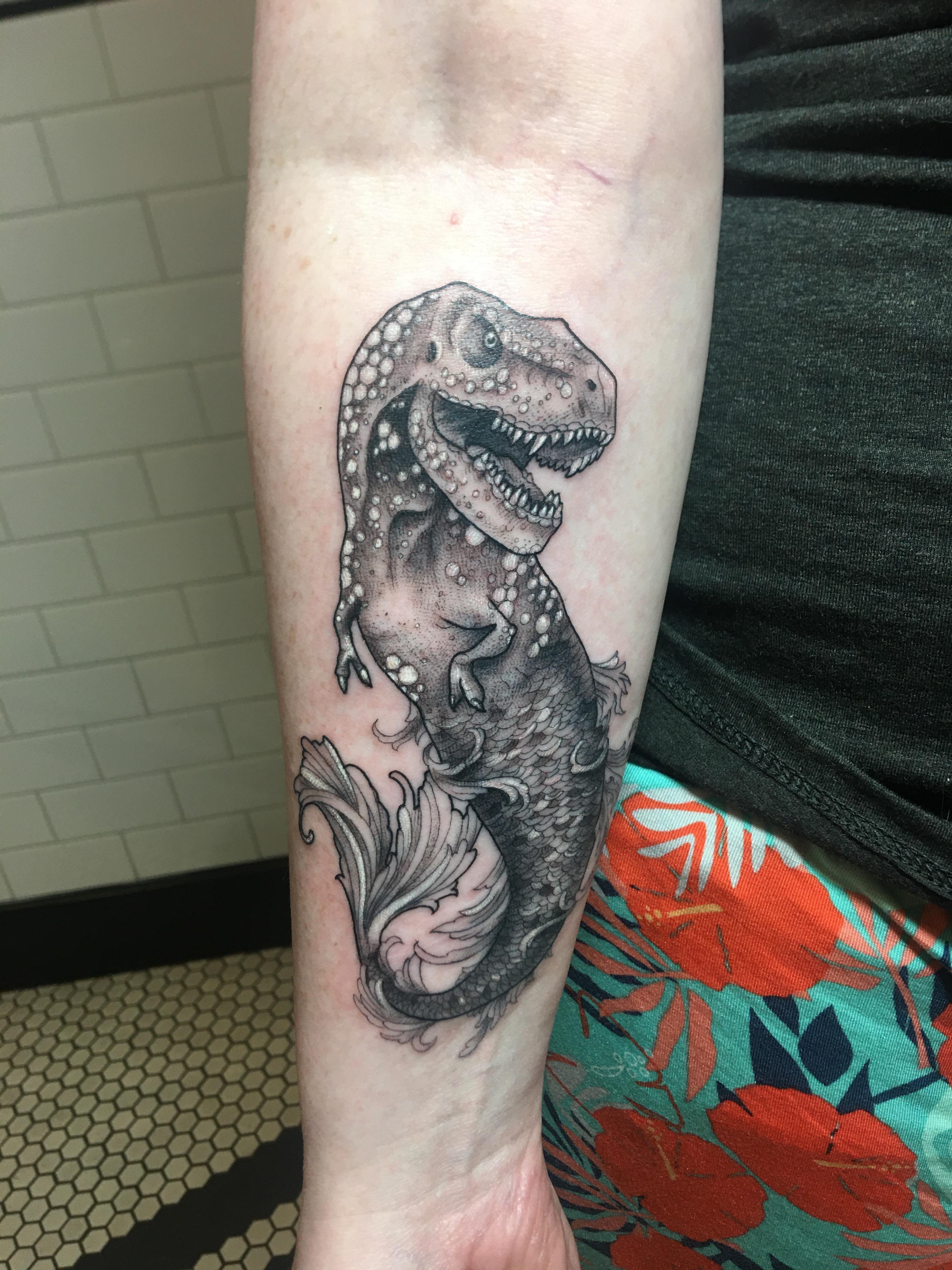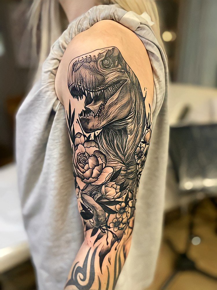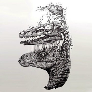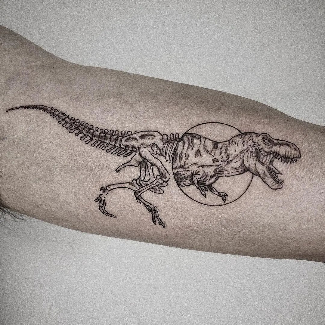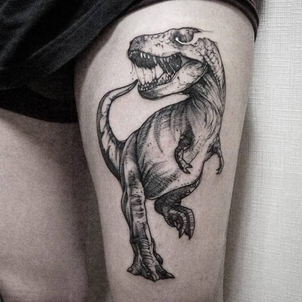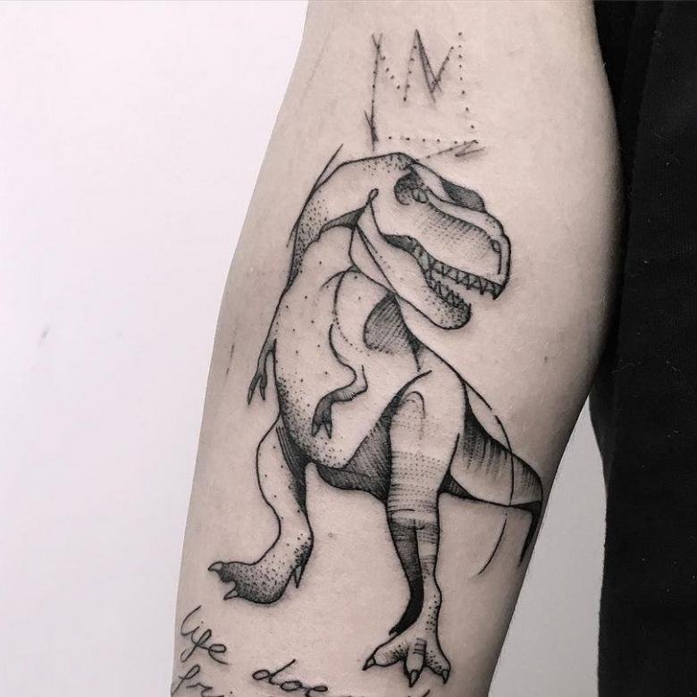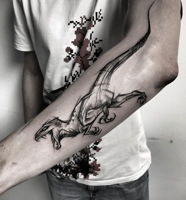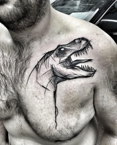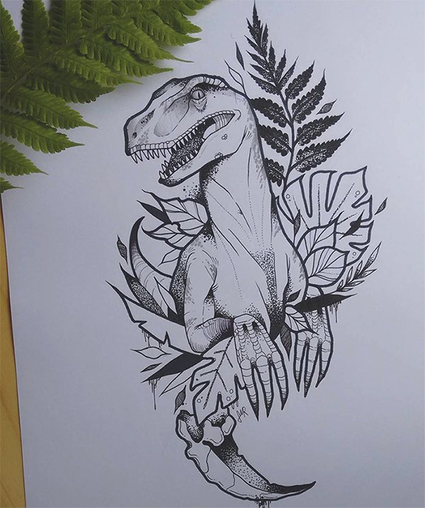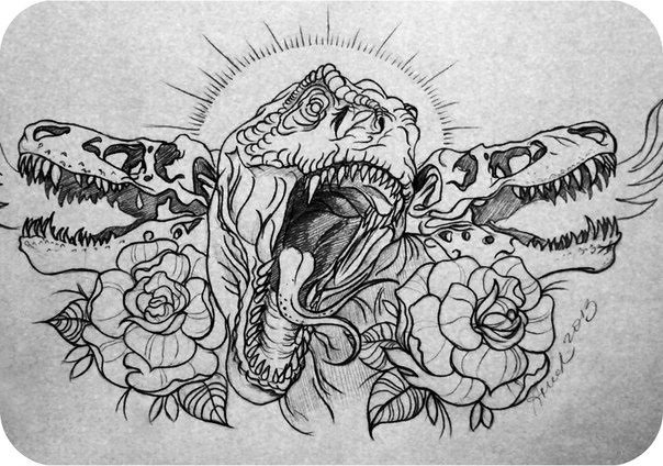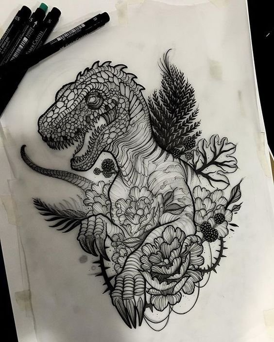 Eine weitere interessante Skizze für eine Tätowierung, die bei vielen Arbeiten mitschwingt, ist die Dino-Skizze.