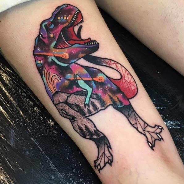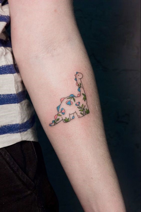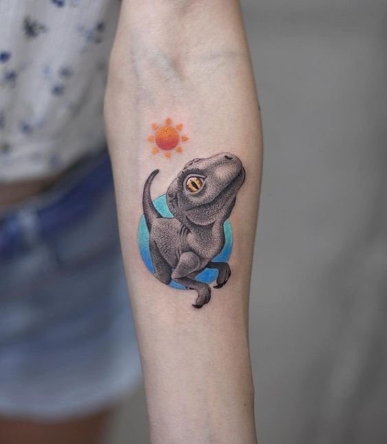 Die Tätowierung deutet auf die Neigung hin, anderen zu helfen und hilfreich zu sein. Außerdem kann ein Tattoo nur ein beliebter Zeichentrickfilm-Charakter sein. Wie es durchgeführt wird-nur für den Kunden entscheiden: seine Größe, Farben und Stil der Tätowierung machen die Arbeit bemerkenswert und einzigartig. Wie kann man die Liebe zur Natur, zur Tierwelt darstellen? Natürlich müssen Sie den Dino auf der Skizze nicht nur das Tier selbst, sondern auch den Hintergrund bezeichnen: