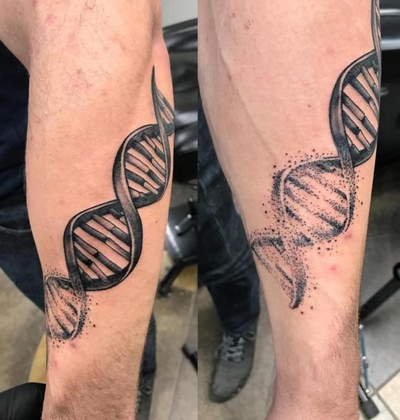 Was bedeutet DNA in einer Tätowierung? Siehe unten.