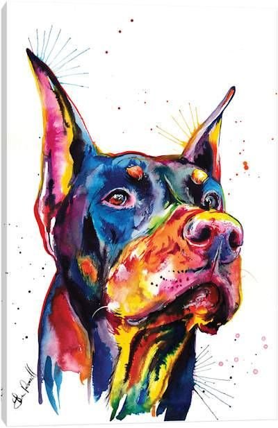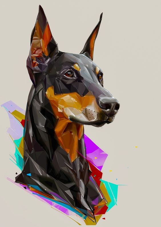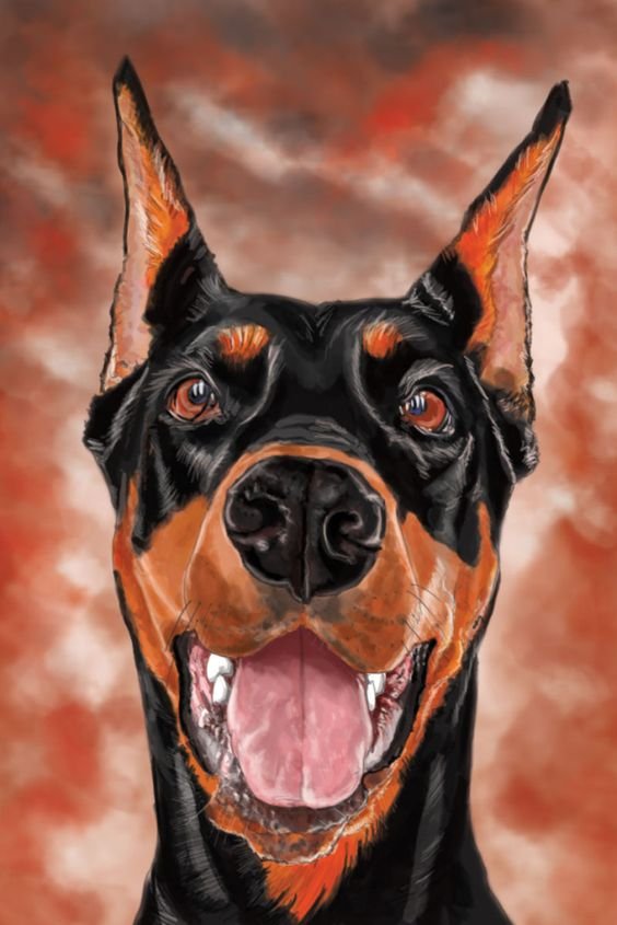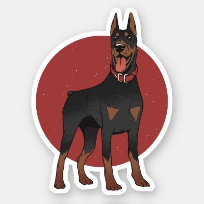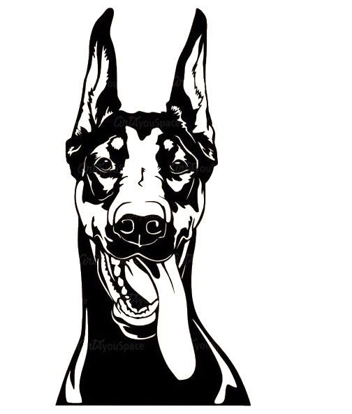 Der Dobermann kann in voller Größe, halb oder nur im Gesicht eines Haustieres dargestellt werden.