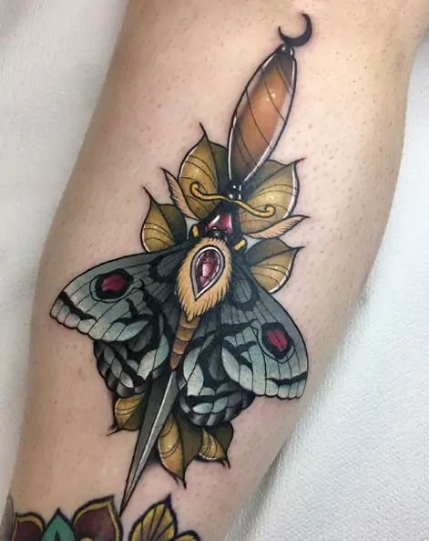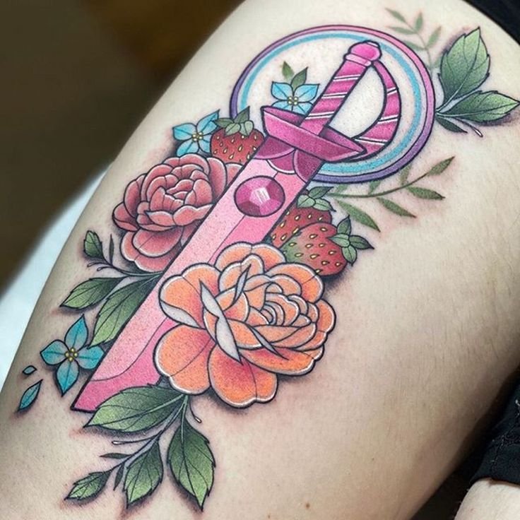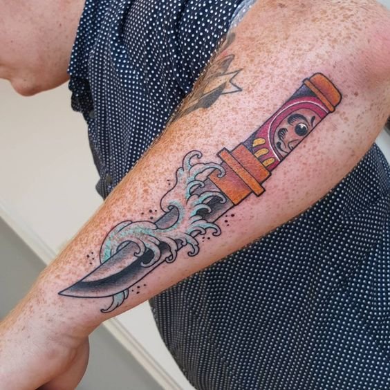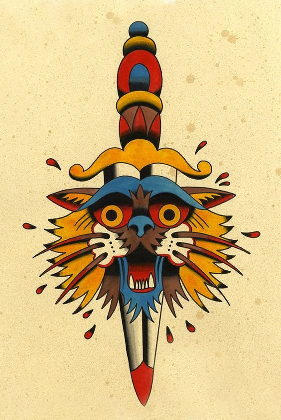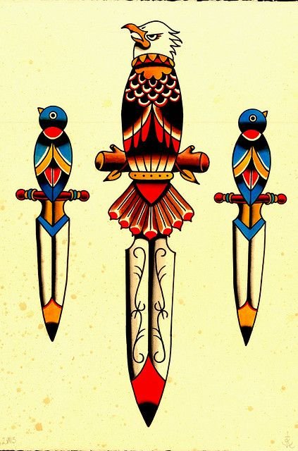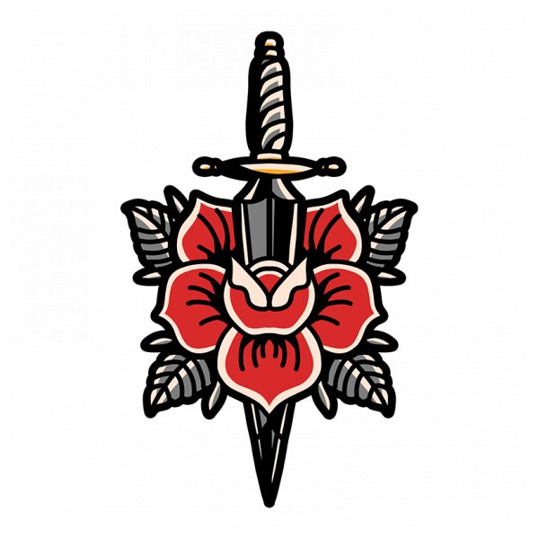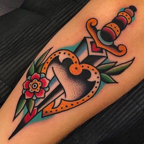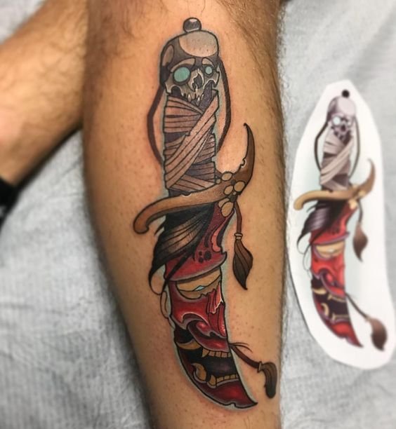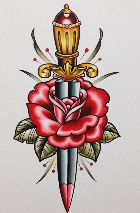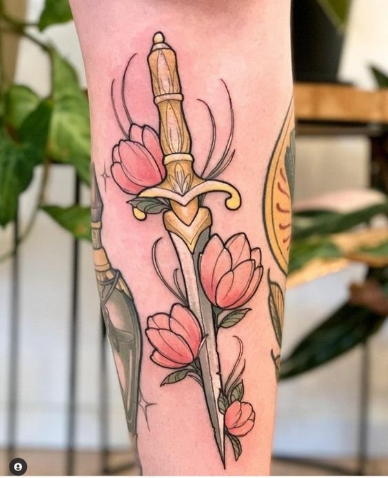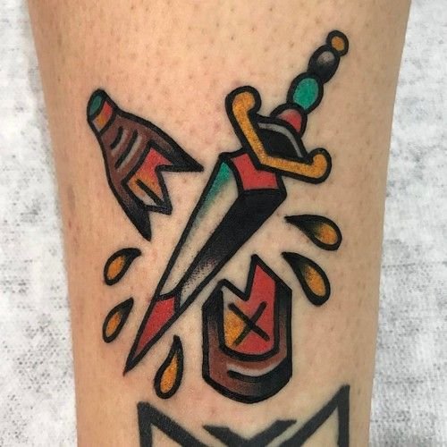 Ein Dolch-Tattoo kann in einer Vielzahl von Farbschemata gestaltet werden.