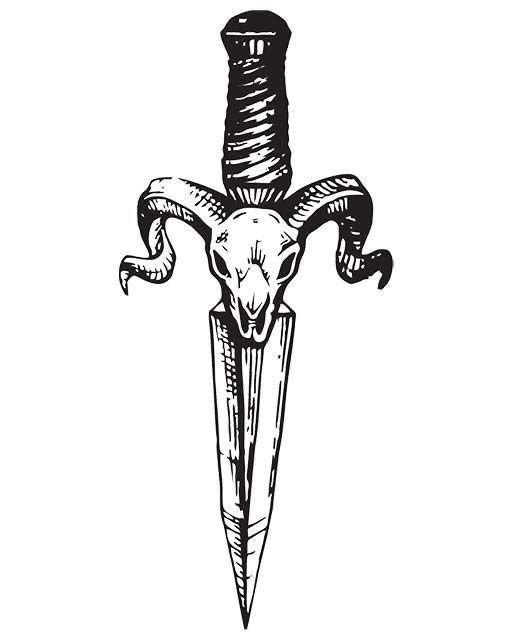Wenn sich der Dolch in den Zähnen des Schädels auf dem Bild befindet, bedeutet eine solche Tätowierung, dass der Träger der Tätowierung bereit ist, außer Rand und Band zu geraten. Zuvor hat ein solches Bild auf einer Piratenfahne sowie dem Körper von Piraten geschmückt.