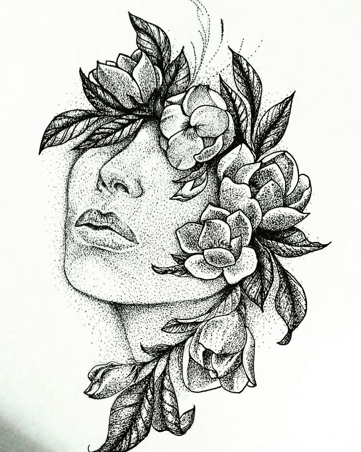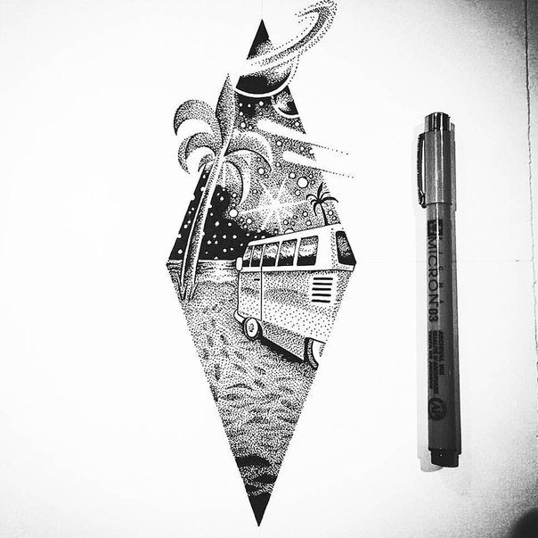 Interessant sind die Bilder, in denen der Stil von Dotwork mit anderen Stilen kombiniert wird.
