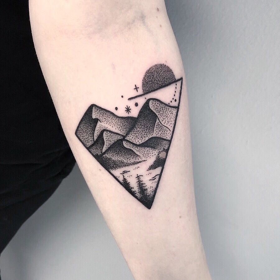 Die Bilder sind im Stil von Dotwork sehr interessant und recht spektakulär ausgeführt. Das Konzept von Dotwork bedeutet die punktierte Technik der Tätowierung, d.h. eine Zeichnung wird aus einer Menge von Punkten konstruiert, die sich in einem strengen Abstand voneinander befinden. Die Farbtiefe hängt davon ab, wie genau sich die Punkte befinden. In der Dotwork-Technik erzeugt der Einsatz von Punkten nicht nur den Kontrast und die Sättigung des Bildes, sondern auch seine Form. Unglaublich spektakulär und ursprünglich ähnliche Bilder sehen in großen Größen aus, bei denen Sie die Komplexität des Bildes vollständig erkennen können. Die Bilder, die ich in diesem Stil habe, sind meistens auf dem Rücken, den Armen und Beinen zu finden, seltener auf dem Handgelenk oder dem Hals. Am häufigsten wird das Bild einer geometrischen Figur zugrunde gelegt, deren Ebene mit einer Vielzahl punktierter Elemente geschmückt ist. Diese Bilder können im Stil von Dotwork als klassisch bezeichnet werden, ein charakteristisches Merkmal ist die Verwendung verschiedener Ornamente in Rot- und Schwarztönen. Sehr schön und durchaus beeindruckend wirken in dieser Version Bilder in Form eines Armbands oder von Ärmeln.
